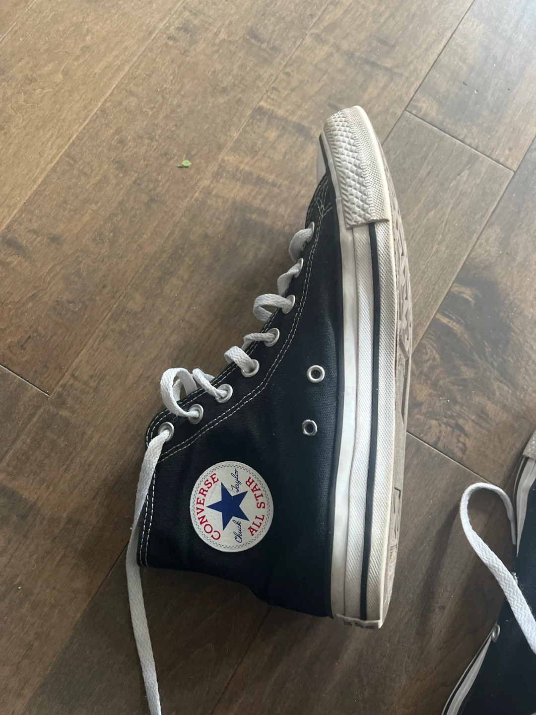 Classic Converse All Star high top sneakers in black canvas. These iconic shoes feature white laces and the signature Chuck Taylor ankle patch. Rubber sole for grip.
