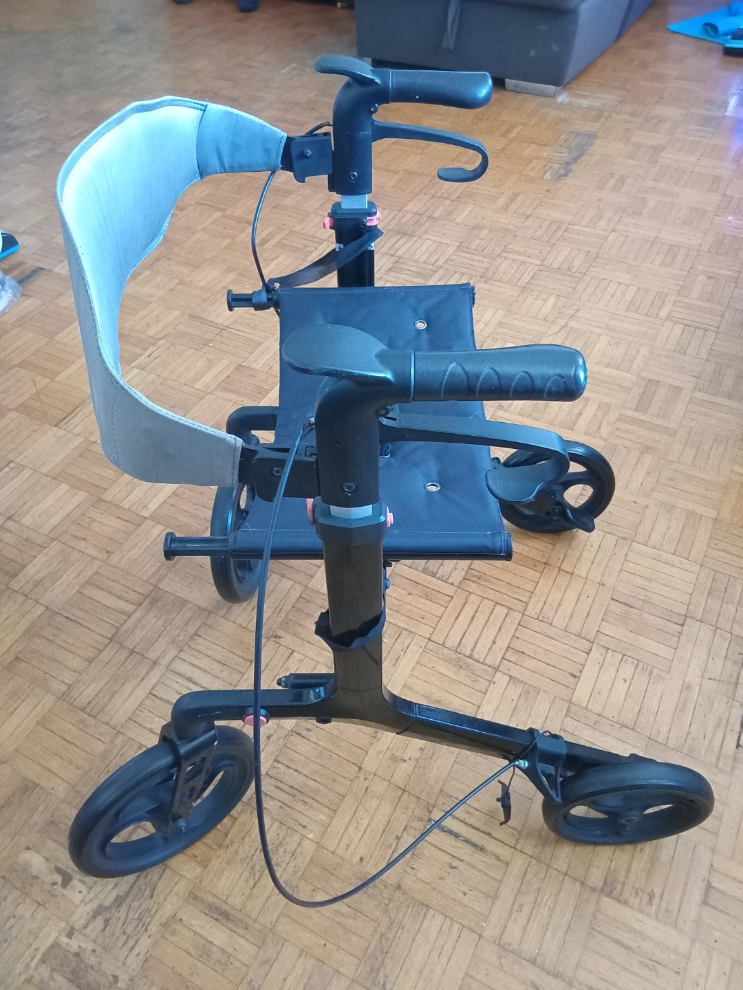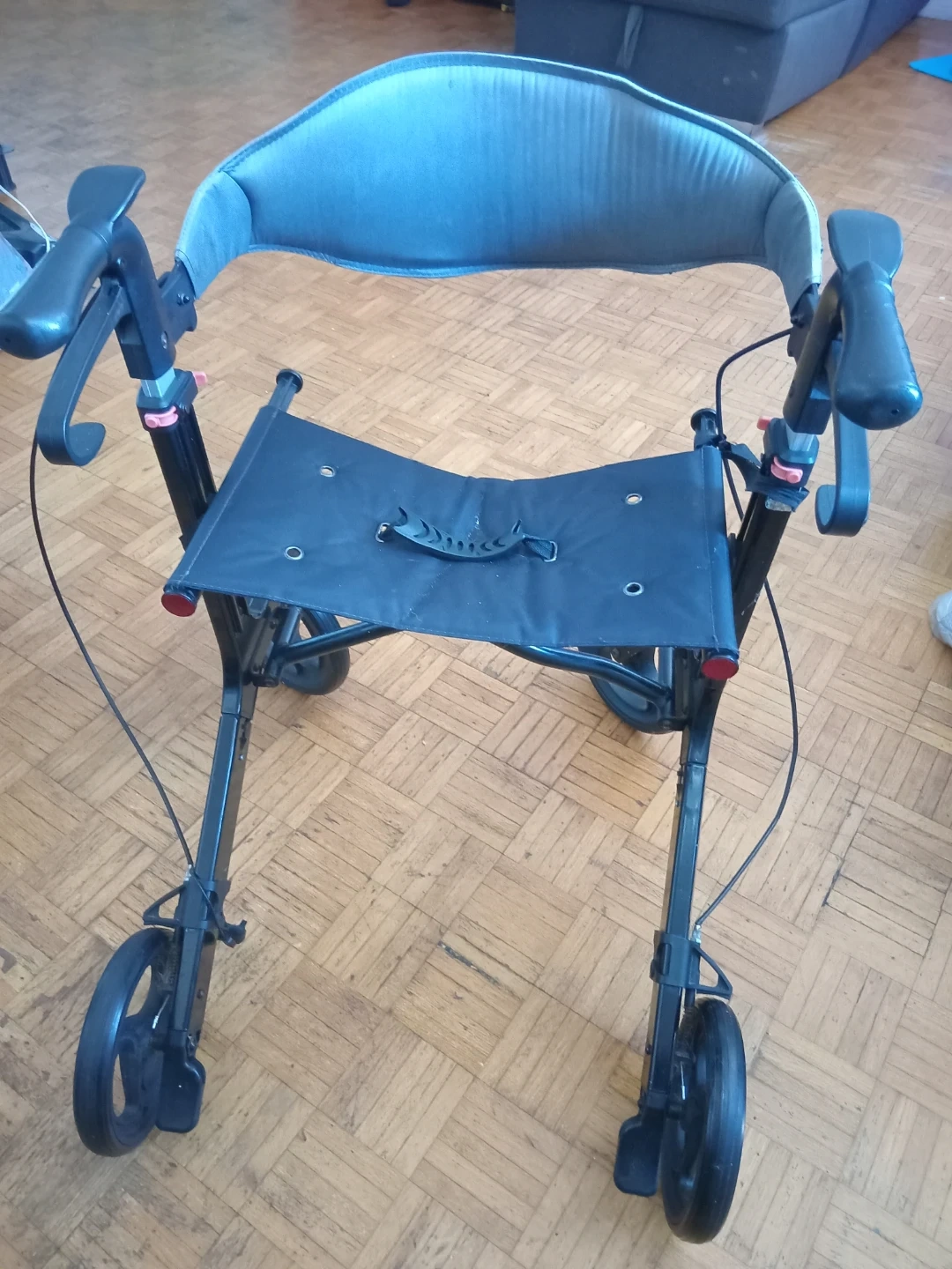 Selling a rollator walker with a seat! It's in great condition and ready to help someone get around with ease. The seat provides a convenient place to rest when needed, and the walker is sturdy and reliable