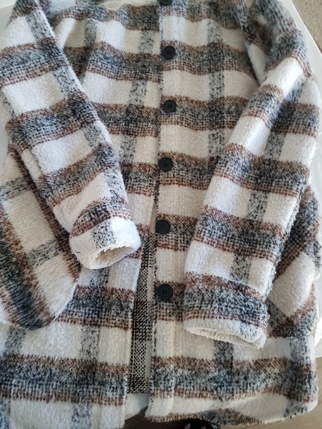 Cozy plaid jacket by DESIGN LAB with a soft sherpa lining. This cozy shacket is a size XS/TP and made in China. It features a classic buffalo plaid pattern and comfortable sherpa interior.