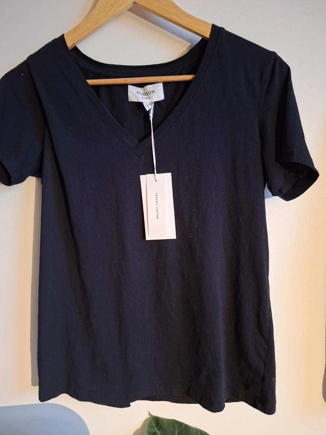 Here's a Hudson North/The Bay black V-neck t-shirt made from organic cotton. Brand new with tags.