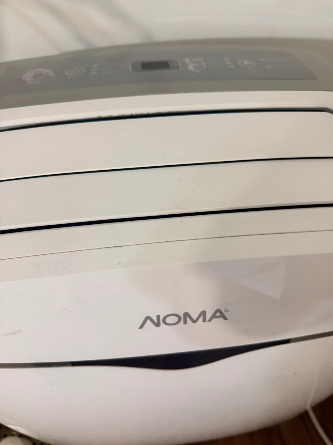 This is a NOMA portable air conditioner. It has multiple modes including cool, dry, and fan. The unit features adjustable fan speeds and a timer function.