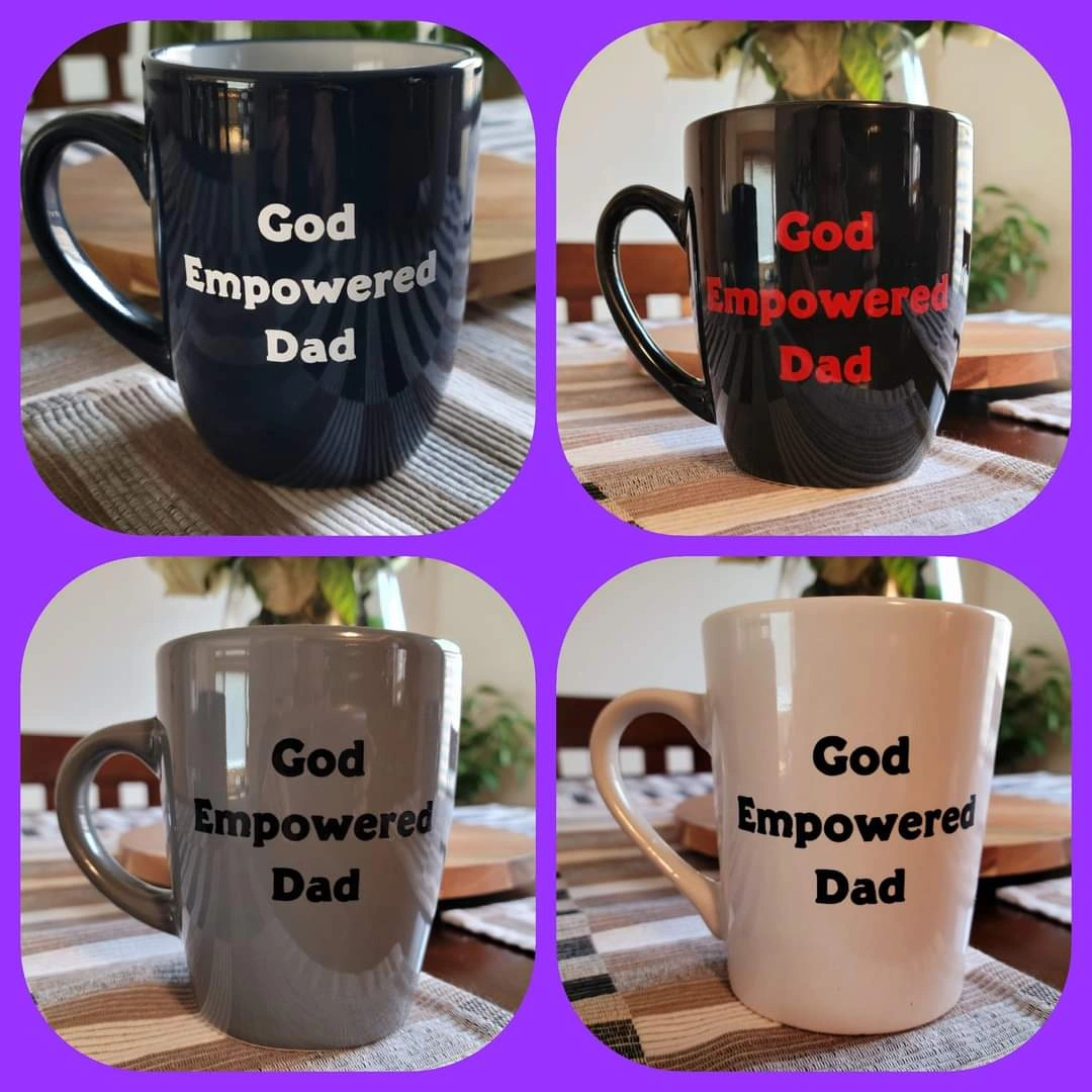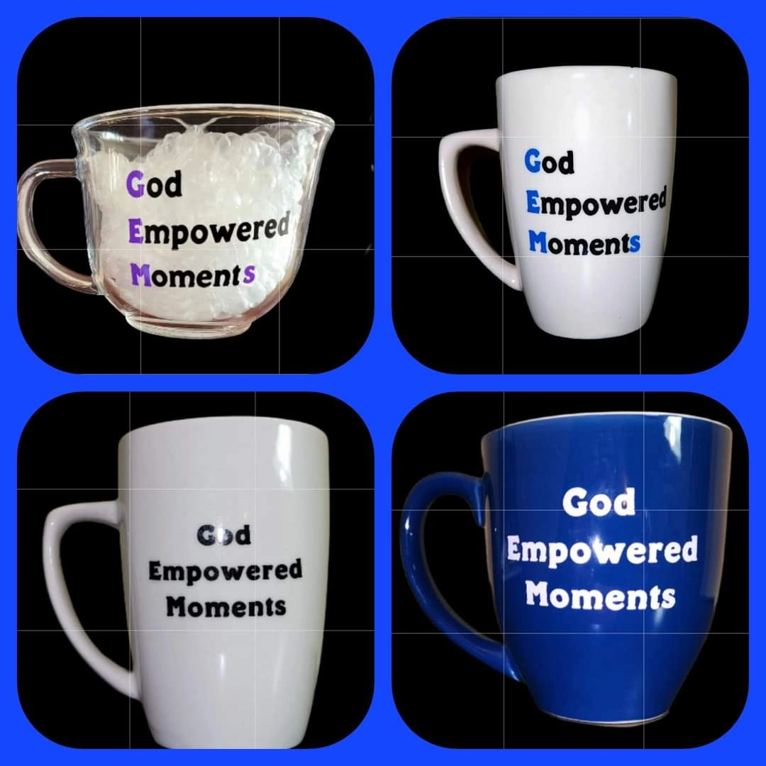 Set of God Empowered Moments Coffee Mugs. Each mug is unique with its own color. Enjoy your coffee with these beautiful mugs. Get yours today!