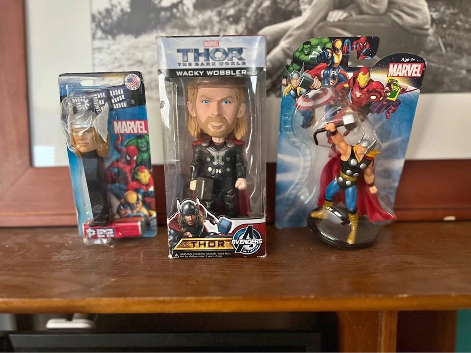 Unopened Thor memorabilia toys & PEZ dispenser. All purchased between 2010 & 2015. Packaging has a little wear but all in good shape overall. Located 7 mins west of Stony Plain.