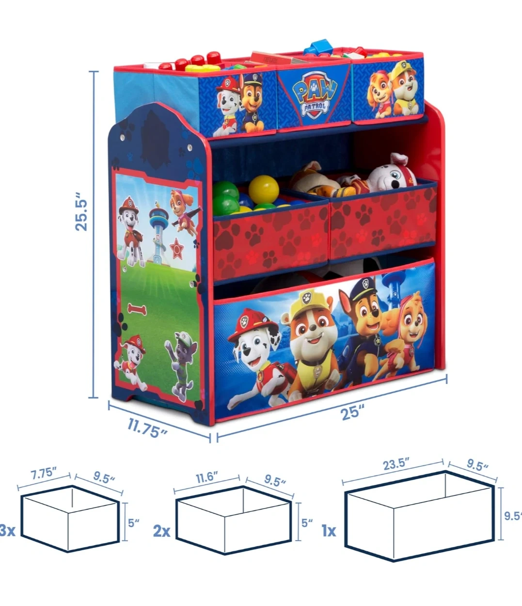 Keep playtime tidy with this Paw Patrol toy organizer. It features multiple bins and shelves for easy storage. Perfect for any young Paw Patrol fan's room!