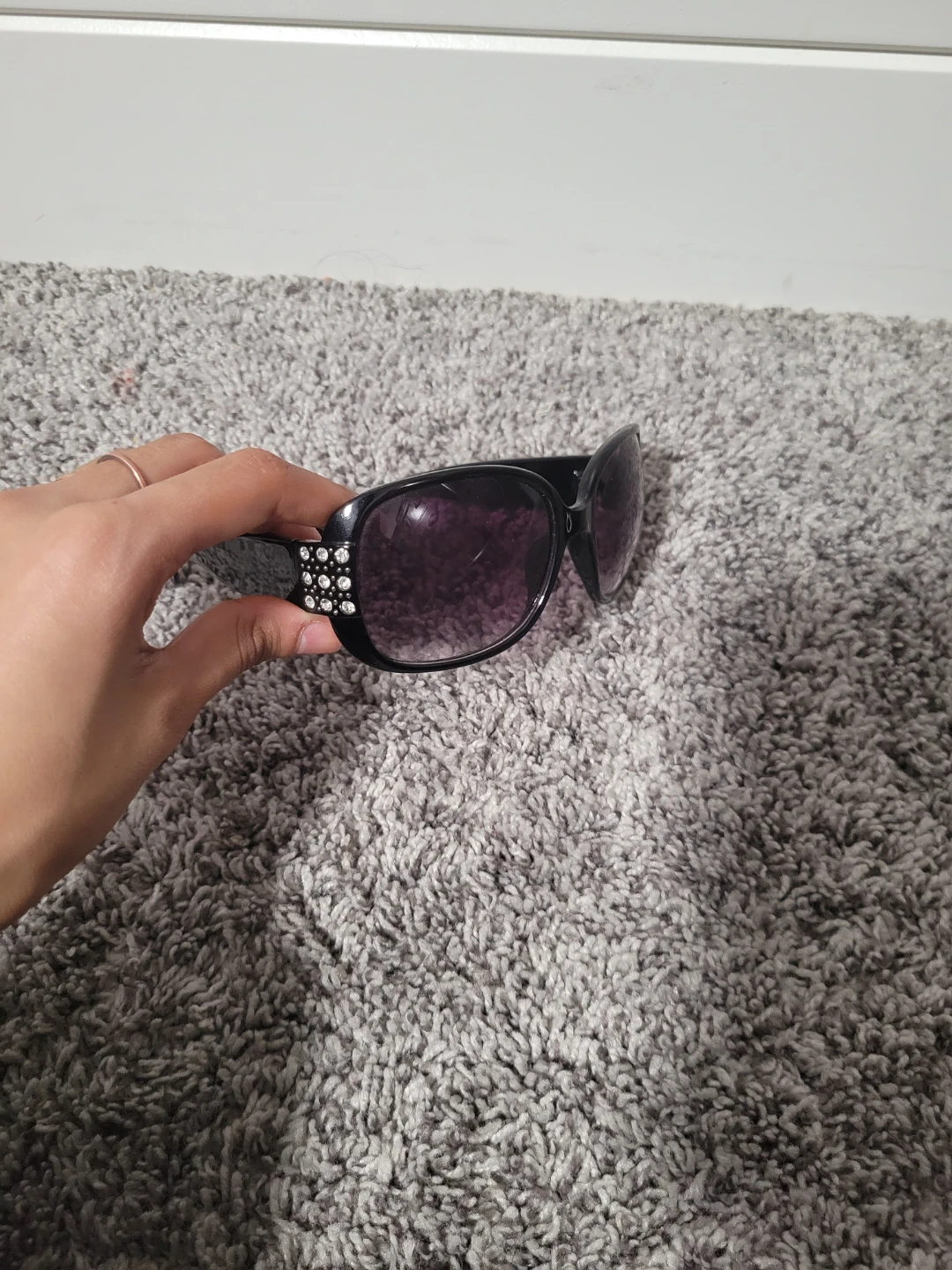 A collection of four pairs of women's sunglasses. Includes styles with tortoise shell frames and decorative accents. Most lenses appear to offer UV protection.