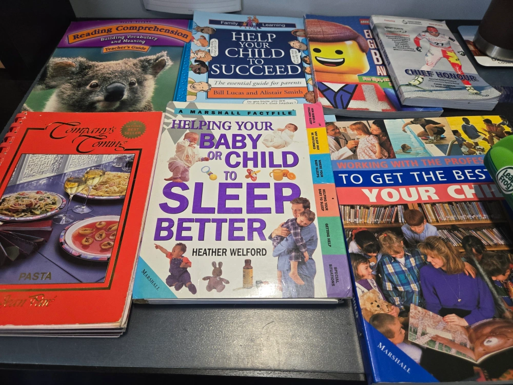 Must pick up. Collection of eight books. Topics include parenting, children's sleep, reading comprehension, and Canadian Pacific skiing. Also includes a LEGO Movie book. Various authors and publishers.