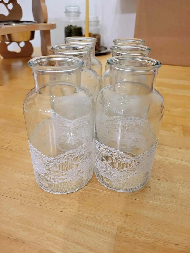6 Decorative Vases with Lace