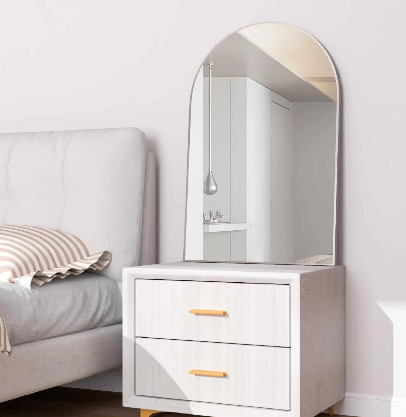 Brighten up your bathroom with this brand new x36" arch bathroom mirror, still in its original packaging, featuring a sleek silver metal frame, adding a touch of modern elegance to any space.
