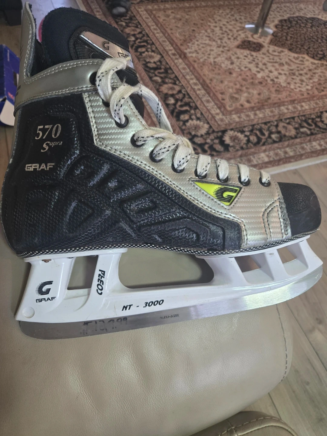 Buy & SellGraf Supra 570 Ice SkatesGraf Supra 570 Ice Skates$62Used Graf Supra 570 ice skates. Black and silver with white laces. These skates are designed for hockey. Blade holder is Graf NT-3000.ConditionLike newWHERE TO MEETCheck LocationView MapSELLERverifiedNargesHeritage Park701 review0 chats·0 favorites·6 viewsSEND CHAT TO SELLERHi Narges! I’m interested in your listing.Hi Narges! I’m interested in your listing.Get the Karrot app to chatSign In to chat