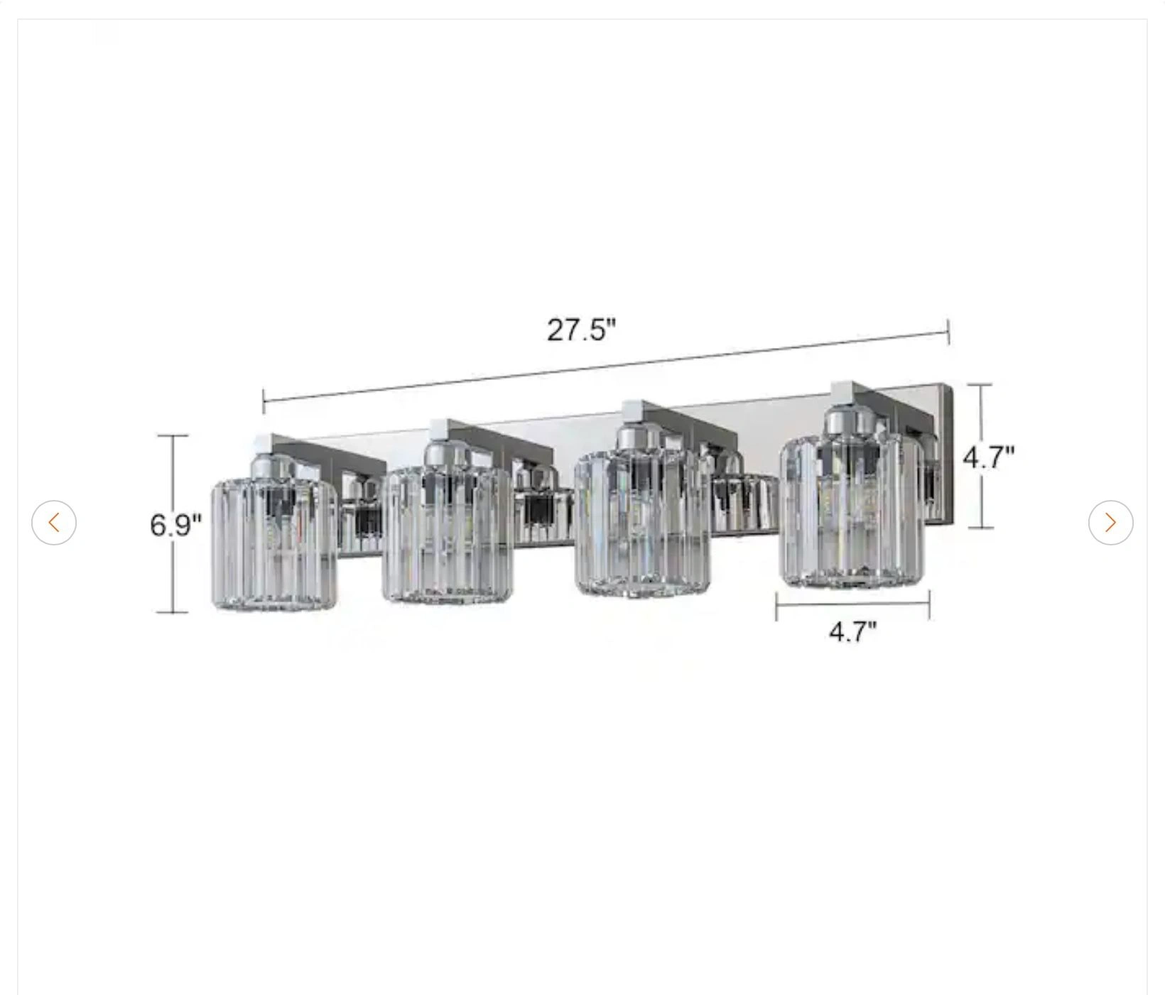 Buy & SellOrillia 4-Light Chrome Bathroom Vanity Light - NewOrillia 4-Light Chrome Bathroom Vanity Light - New$100New. Have 2 Available Orillia 27.5 in. 4-Light Chrome Bathroom Vanity Light with Crystal Round ShadesWHERE TO MEETCheck LocationView MapSELLERBetyArcher Heights361 review0 chats·0 favorites·2 viewsSEND CHAT TO SELLERHi Bety! I’m interested in your listing.Hi Bety! I’m interested in your listing.Get the Karrot app to chatSign In to chat
