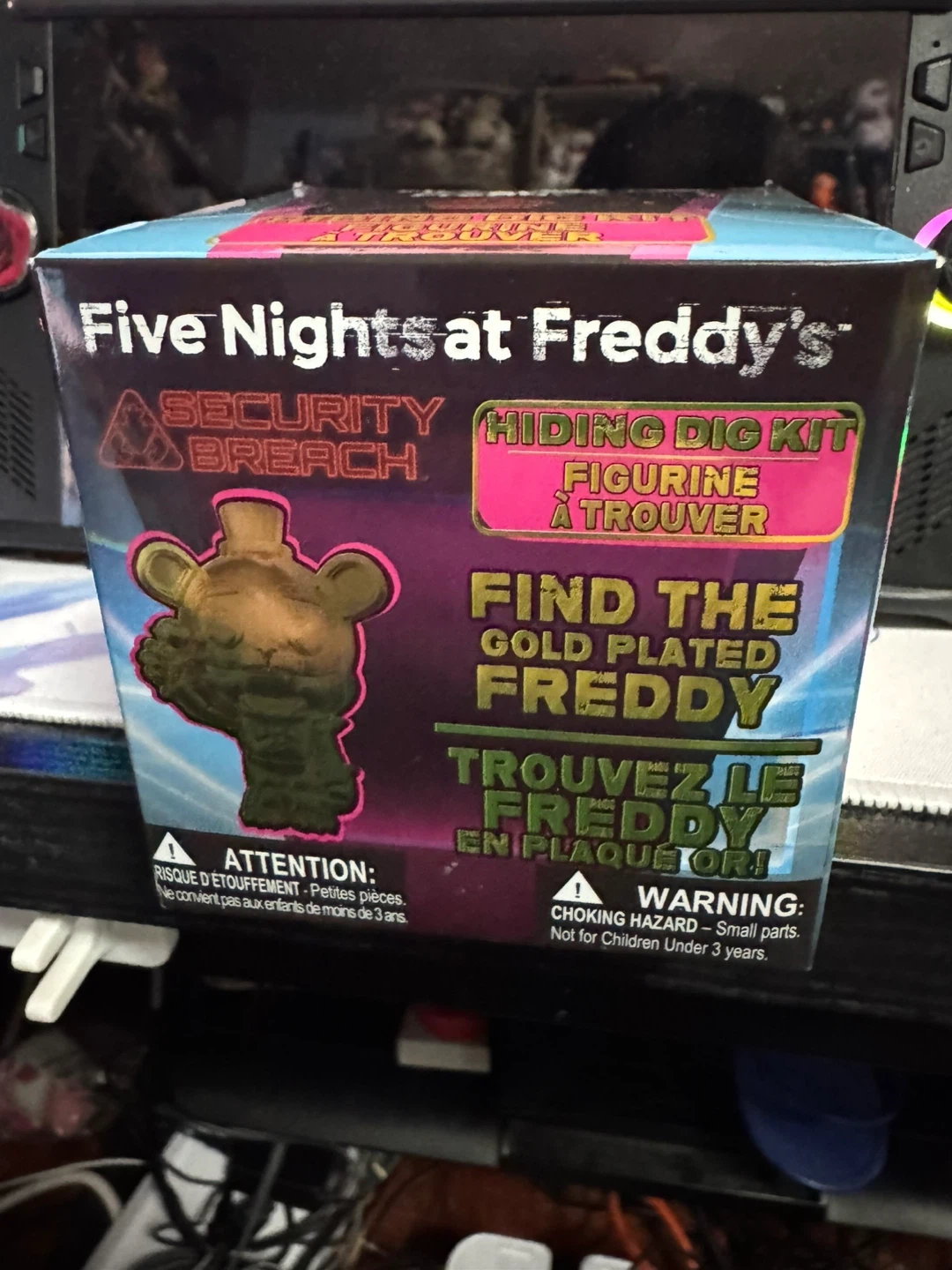 This is a Five Nights at Freddy's Security Breach Hiding Dig Kit. It includes a gold-plated Freddy figurine to discover. Warning: Contains small parts, not for children under 3 years.