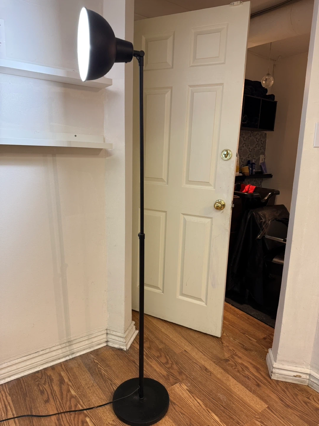 Selling an IKEA black floor lamp in great condition! It's perfect for adding some extra light to any room. Its sleek design fits well with most decor styles, and it's easy to move around as needed