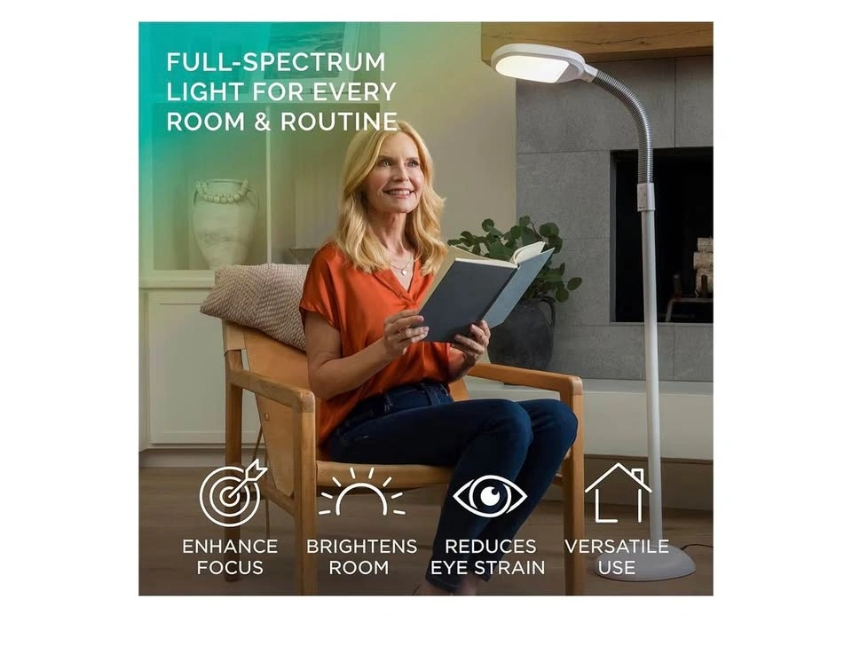 Verilux SmartLight Full Spectrum LED Modern Floor Lamp with Adjustable Brightness, Flexible Gooseneck and Easy Controls. Reduces Eye Strain and Fatigue. Ideal for Reading, Artists, Craft (White).