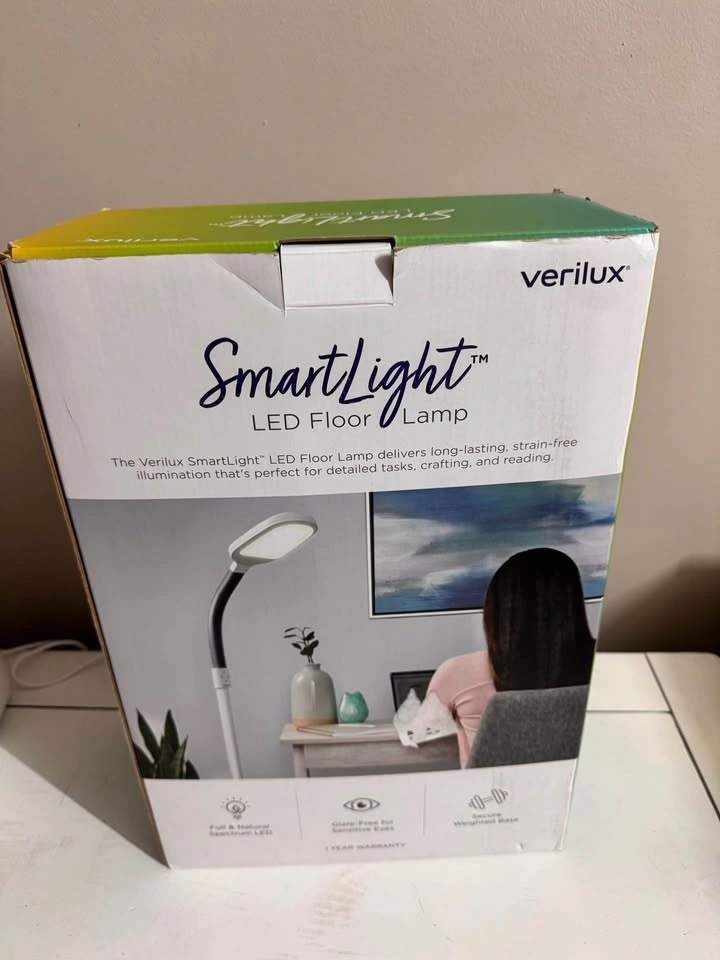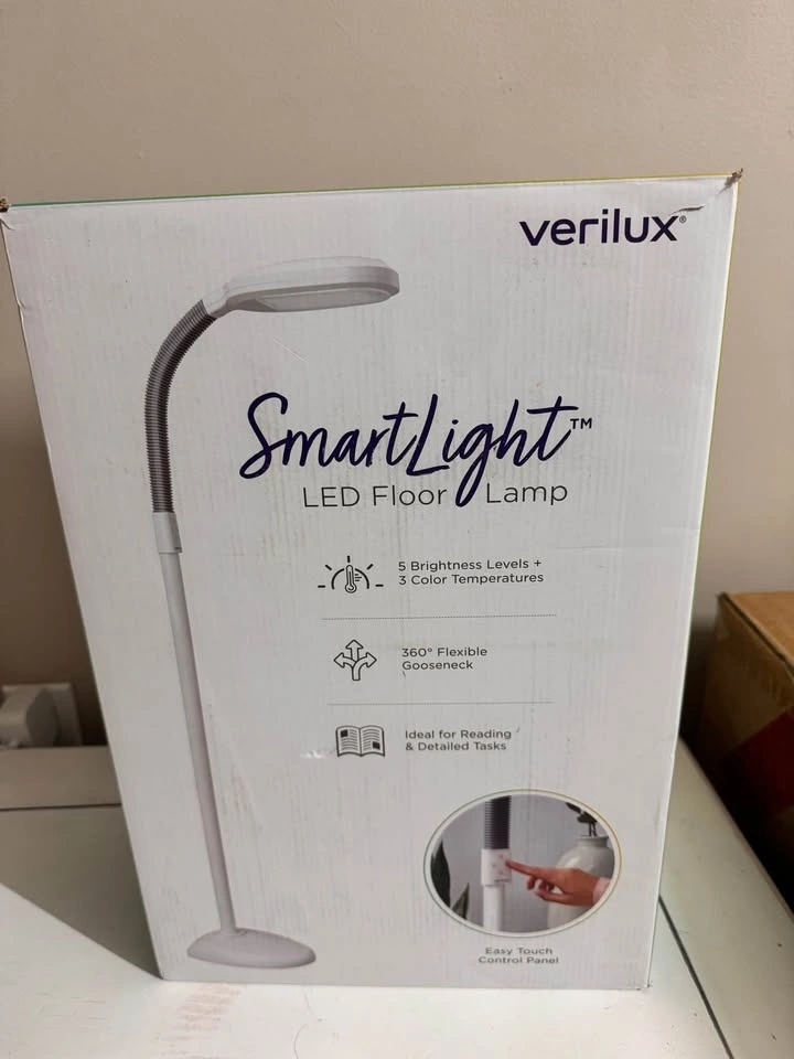 Verilux SmartLight Full Spectrum LED Modern Floor Lamp with Adjustable Brightness, Flexible Gooseneck and Easy Controls. Reduces Eye Strain and Fatigue. Ideal for Reading, Artists, Craft (White).