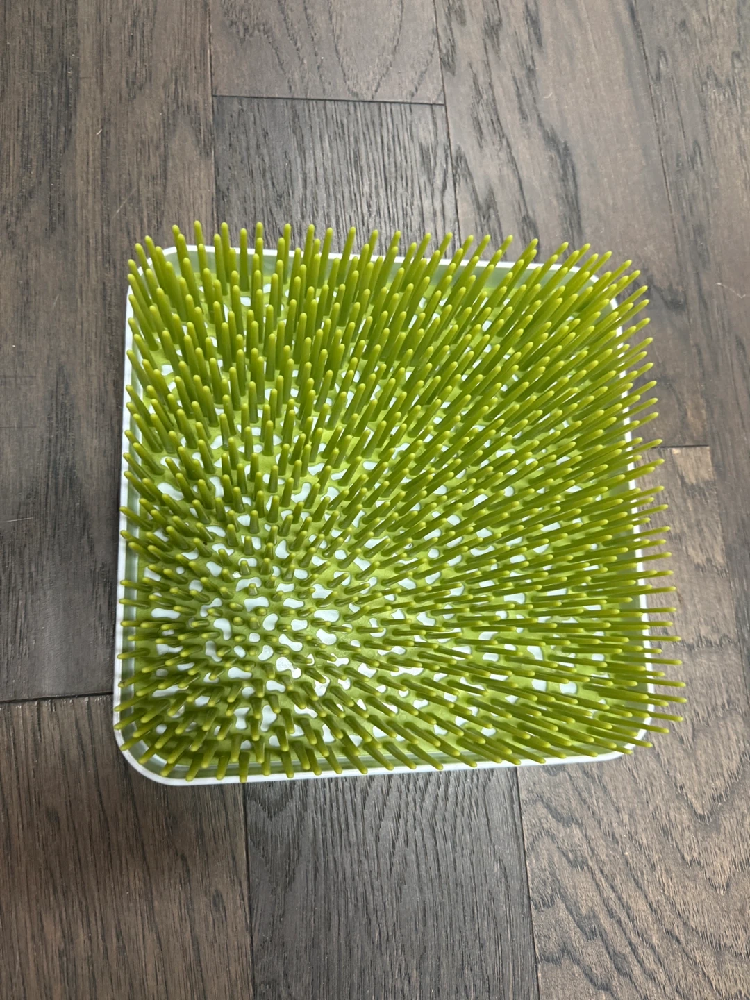 This Boon grass drying rack is great for drying baby bottles and accessories. It's made of plastic and features flexible bristles. It has a compact design for easy storage.
