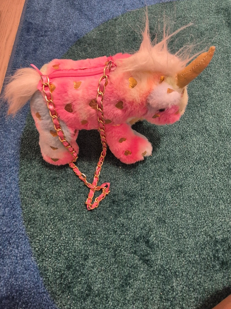 Super cute unicorn plush purse! It's soft and colourful, with a gold chain strap. Perfect for a little one who loves unicorns