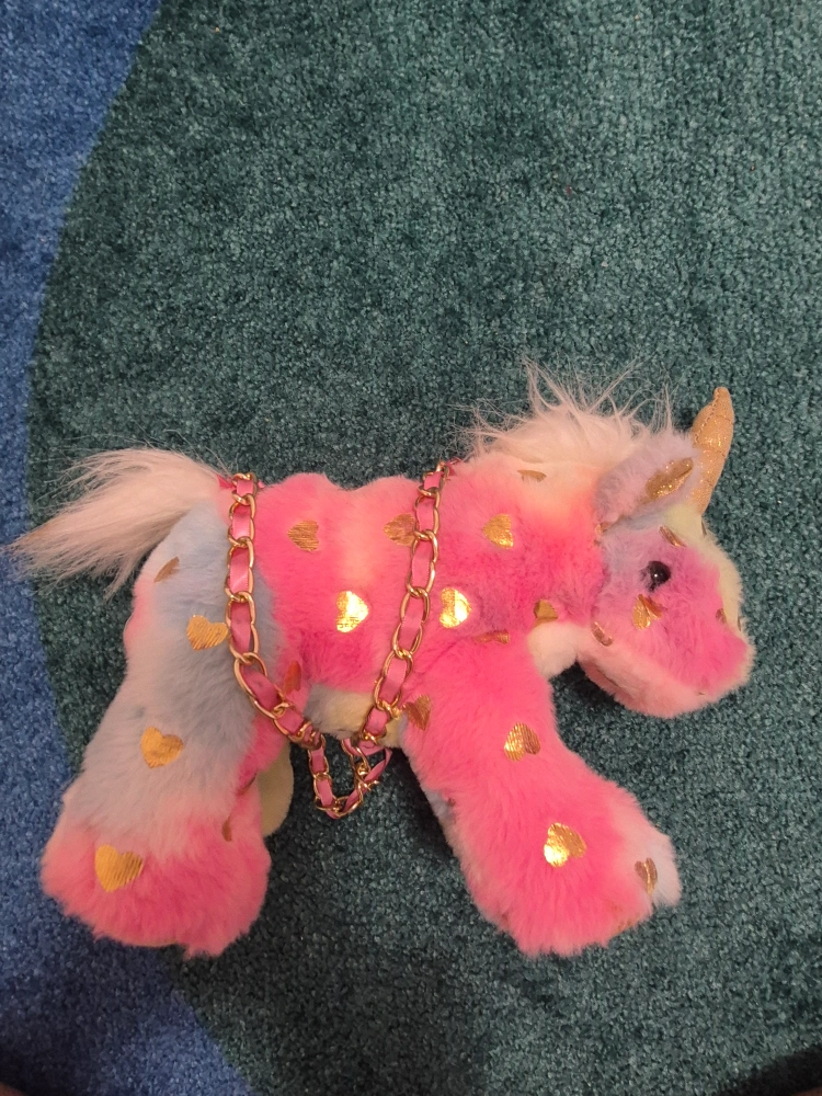 Super cute unicorn plush purse! It's soft and colourful, with a gold chain strap. Perfect for a little one who loves unicorns