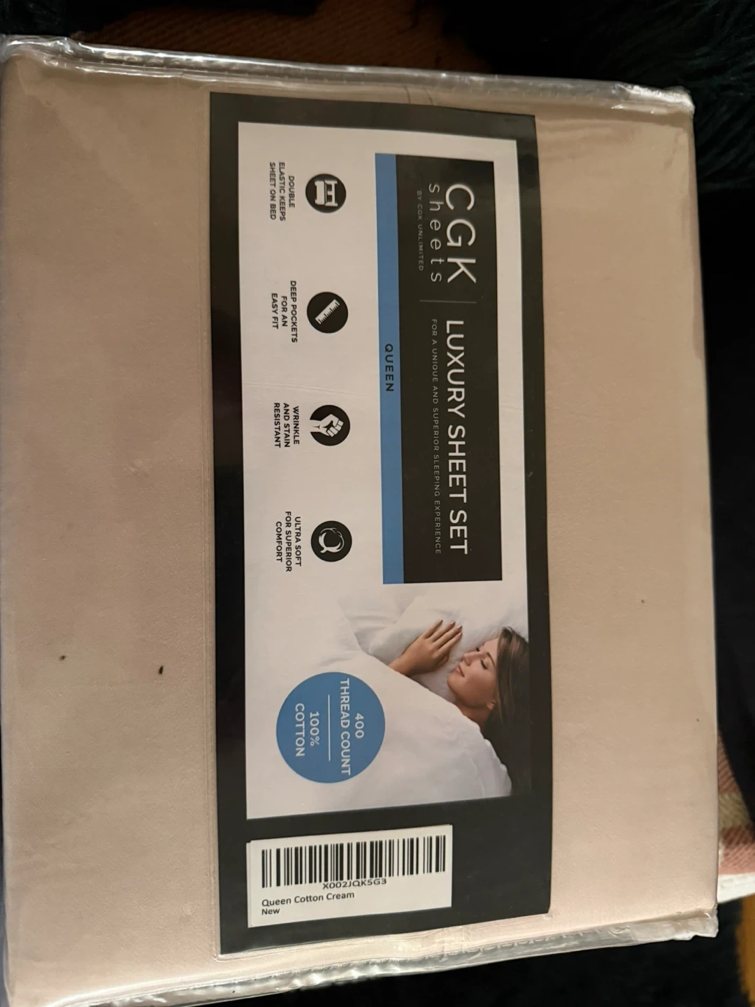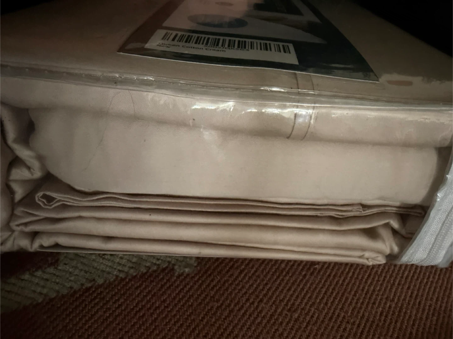 I'm selling a brand new CGK Unlimited luxury sheet set! This is a queen size set in the color Cotton Cream. It's made of 100% cotton and has a 400 thread count. The sheets feature: