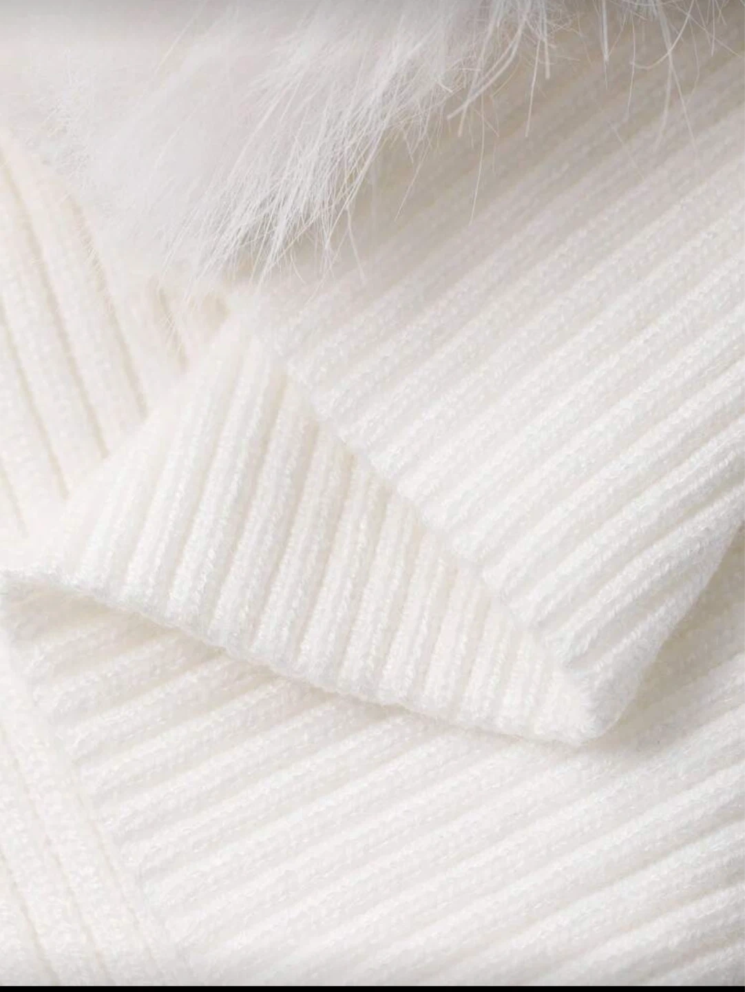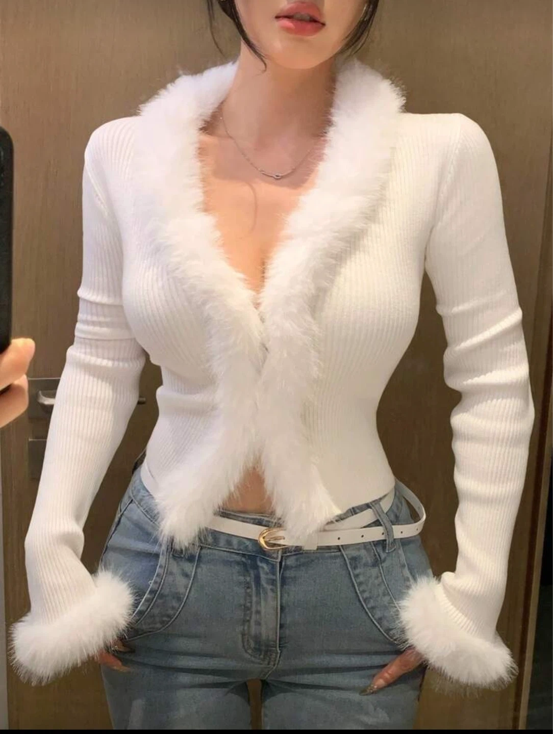 White Fur Trim Ribbed Cardigan
