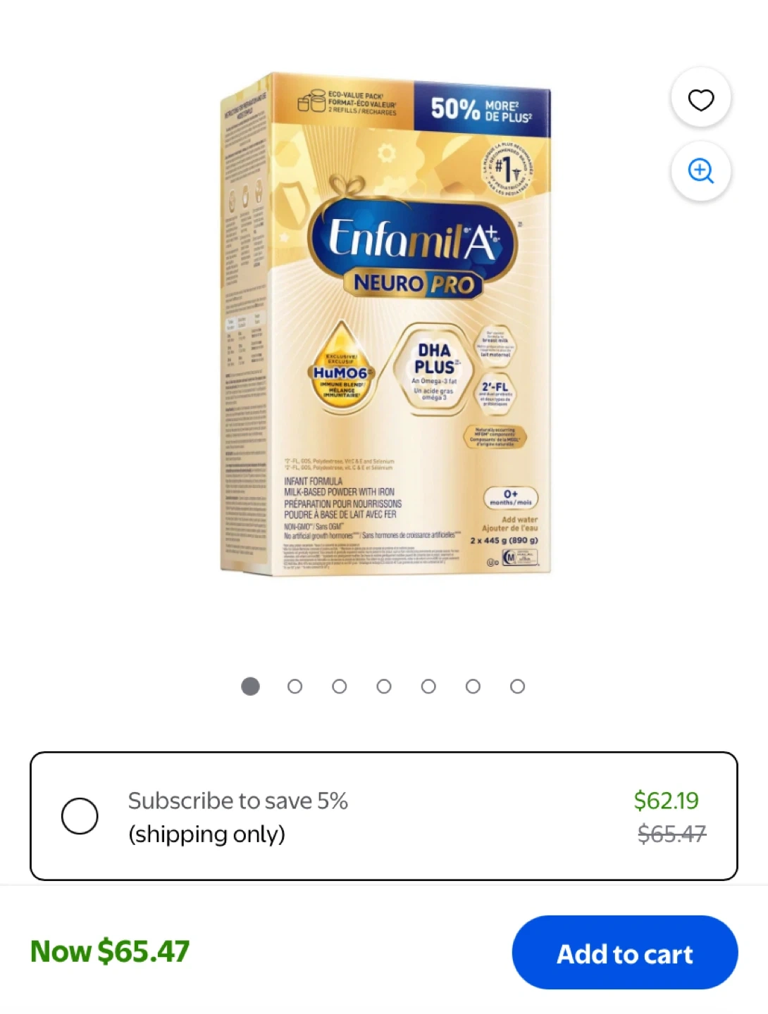 Enfamil A+ Neuro Pro infant formula comes in a milk-based powder with iron. It's enriched with HuMO6 immune blend and DHA Plus. This eco-value pack contains two 445g refills. Suitable for 0+ months.