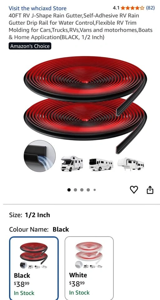 New 40FT RV J-Shape Rain Gutter, Self-Adhesive RV Rain Gutter Drip Rail for Water Control, Flexible RV Trim Molding for Cars, Trucks, RVs, Vans and motorhomes, Boats & Home Application (BLACK, 1/2 Inch)