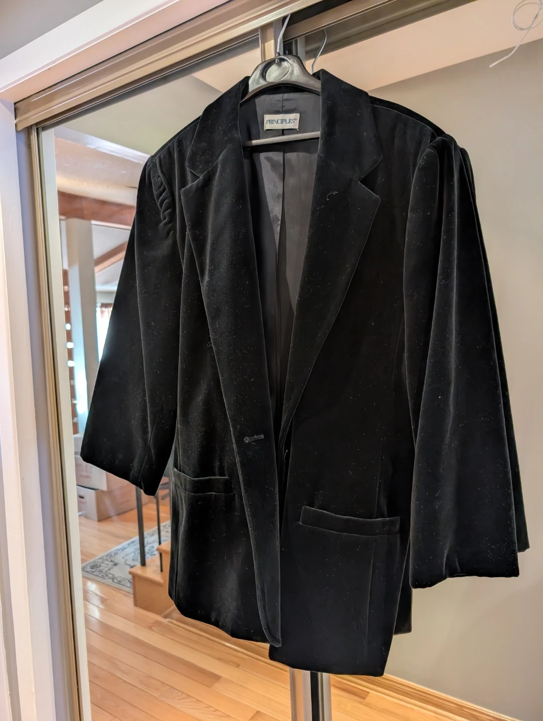 Buy & SellWoman's Principles Black Velvet Blazer - Size 16Woman's Principles Black Velvet Blazer - Size 16$10This black velvet blazer is from Principles and made in Canada. It's a size 16. The material is 100% cotton velvet with a satin lining.ConditionGoodSize16WHERE TO MEETCheck LocationView MapSELLERverifiedAndrew HL'Amoreaux19614 reviews0 chats·0 favorites·7 viewsSEND CHAT TO SELLERHi Andrew H! I’m interested in your listing.Hi Andrew H! I’m interested in your listing.Get the Karrot app to chatSign In to chat