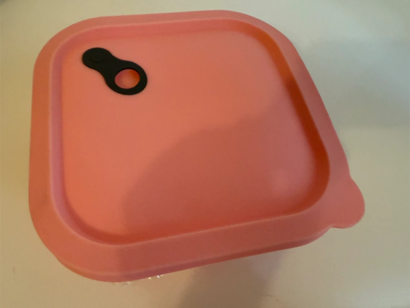 This is a square glass food storage container with a pink silicone lid. It's great for storing leftovers or meal prepping. The glass base is durable and the lid seals well to keep food fresh.
