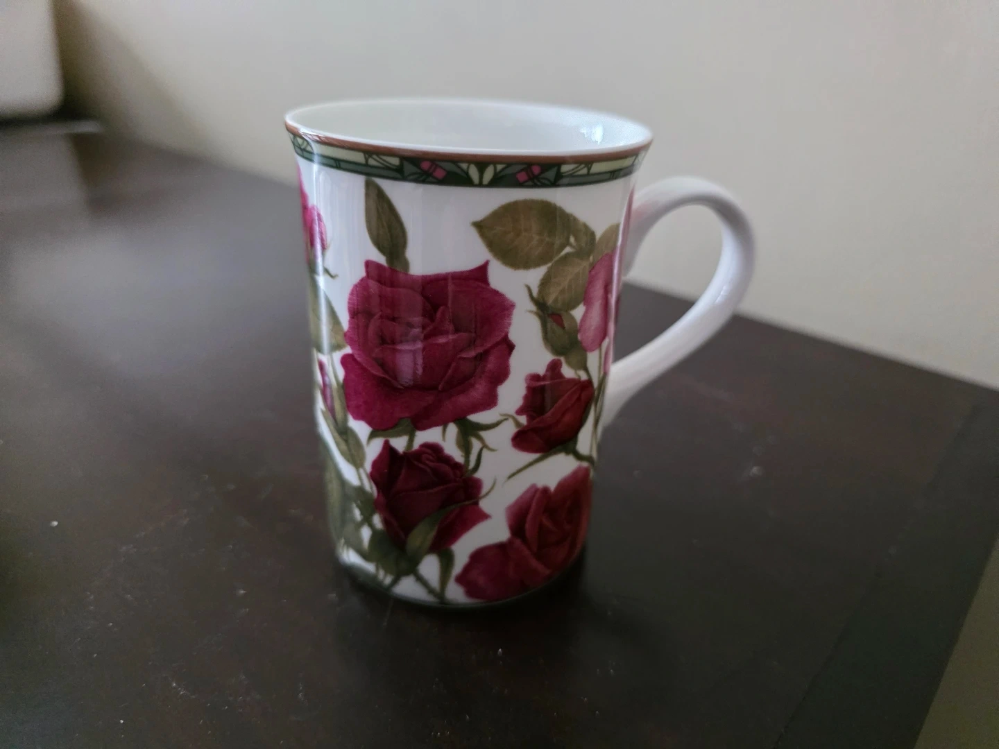 These Sunrise fine bone china mugs feature a lovely floral design with gold trim. They're ideal for enjoying your morning coffee or tea. Dishwasher safe. Made in Canada.