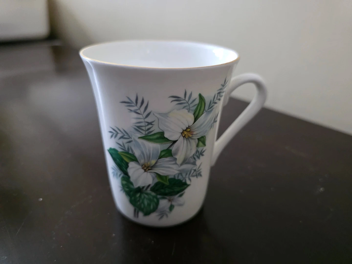 These Sunrise fine bone china mugs feature a lovely floral design with gold trim. They're ideal for enjoying your morning coffee or tea. Dishwasher safe. Made in Canada.