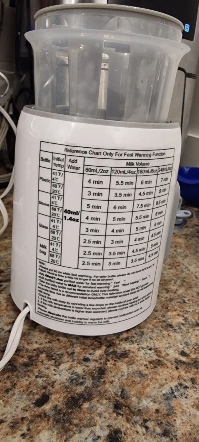 Selling a Grownsy baby bottle warmer. It has a reference chart for fast warming function printed on the side. It also has a control panel with buttons for power, temperature adjustment, and mode selection. Perfect for quickly and safely warming baby bottles!
