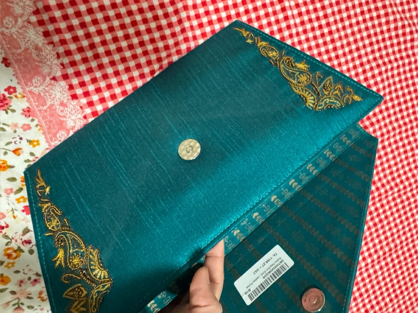 Teal Clutch Purse with Gold Embroidery