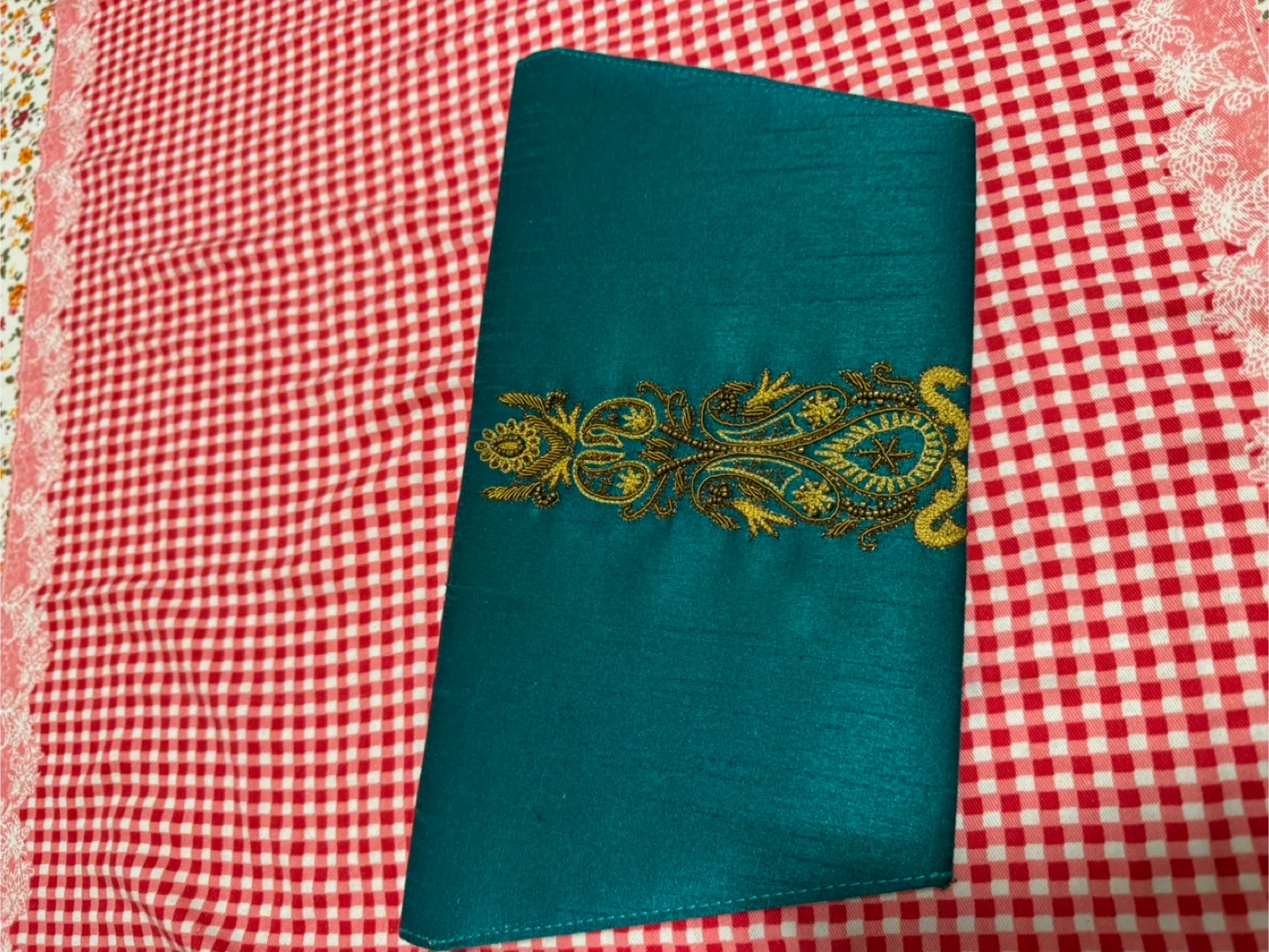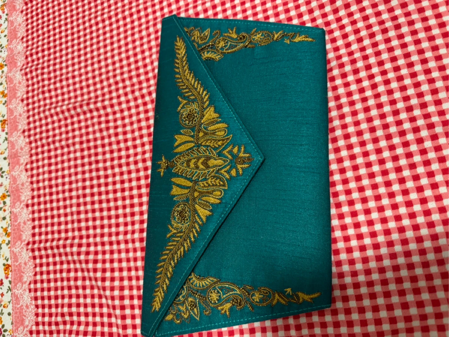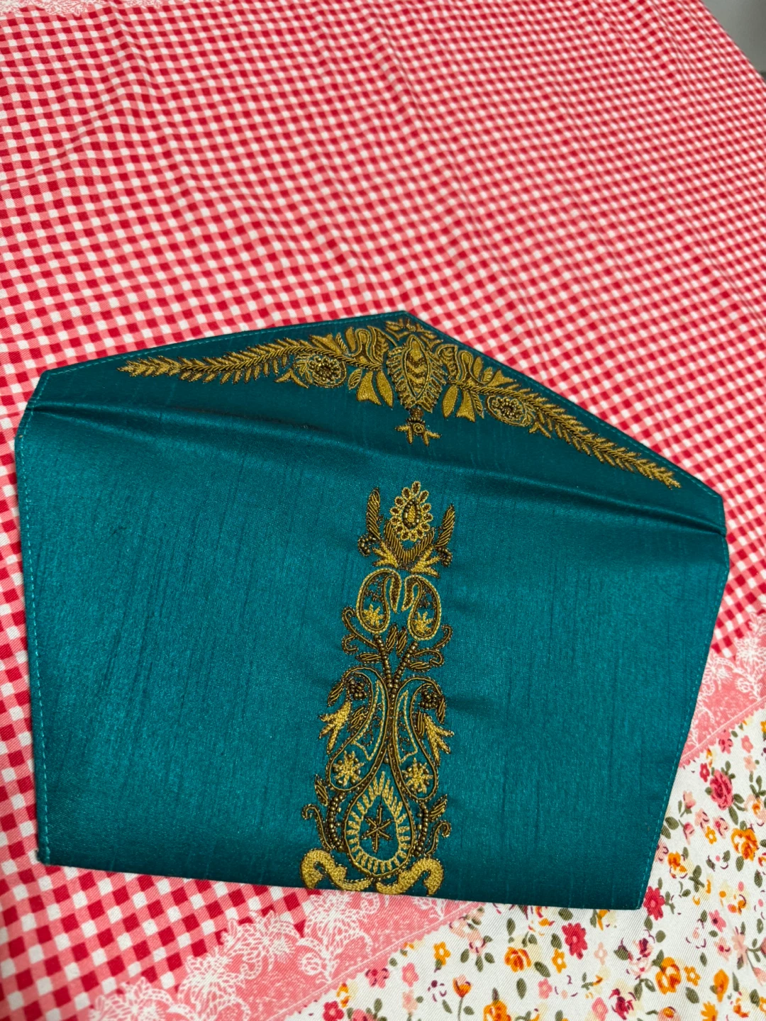Teal Clutch Purse with Gold Embroidery