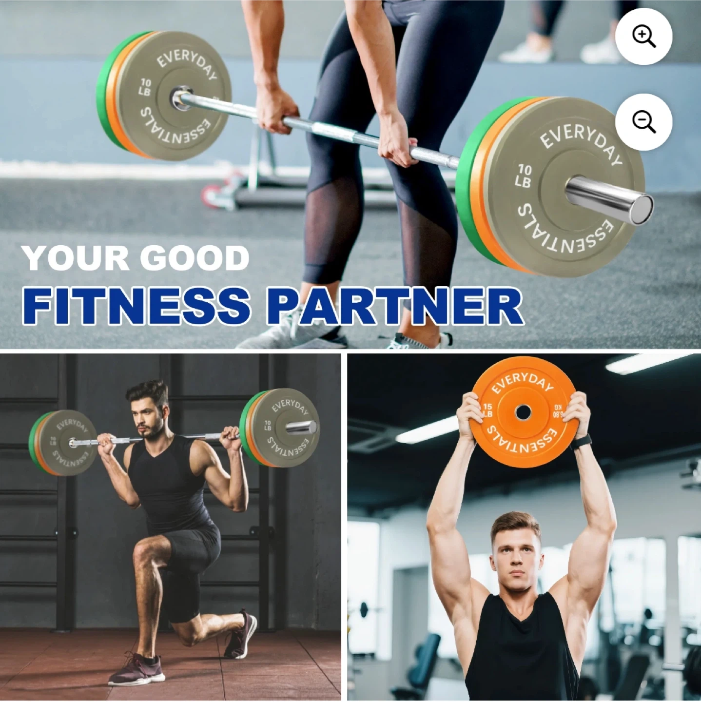 This set includes two 10LB, two 15LB, and two 25LB weight plates for a total of 100LB. They feature a 2-inch hole to fit all Olympic bars. Color-coded for easy identification.