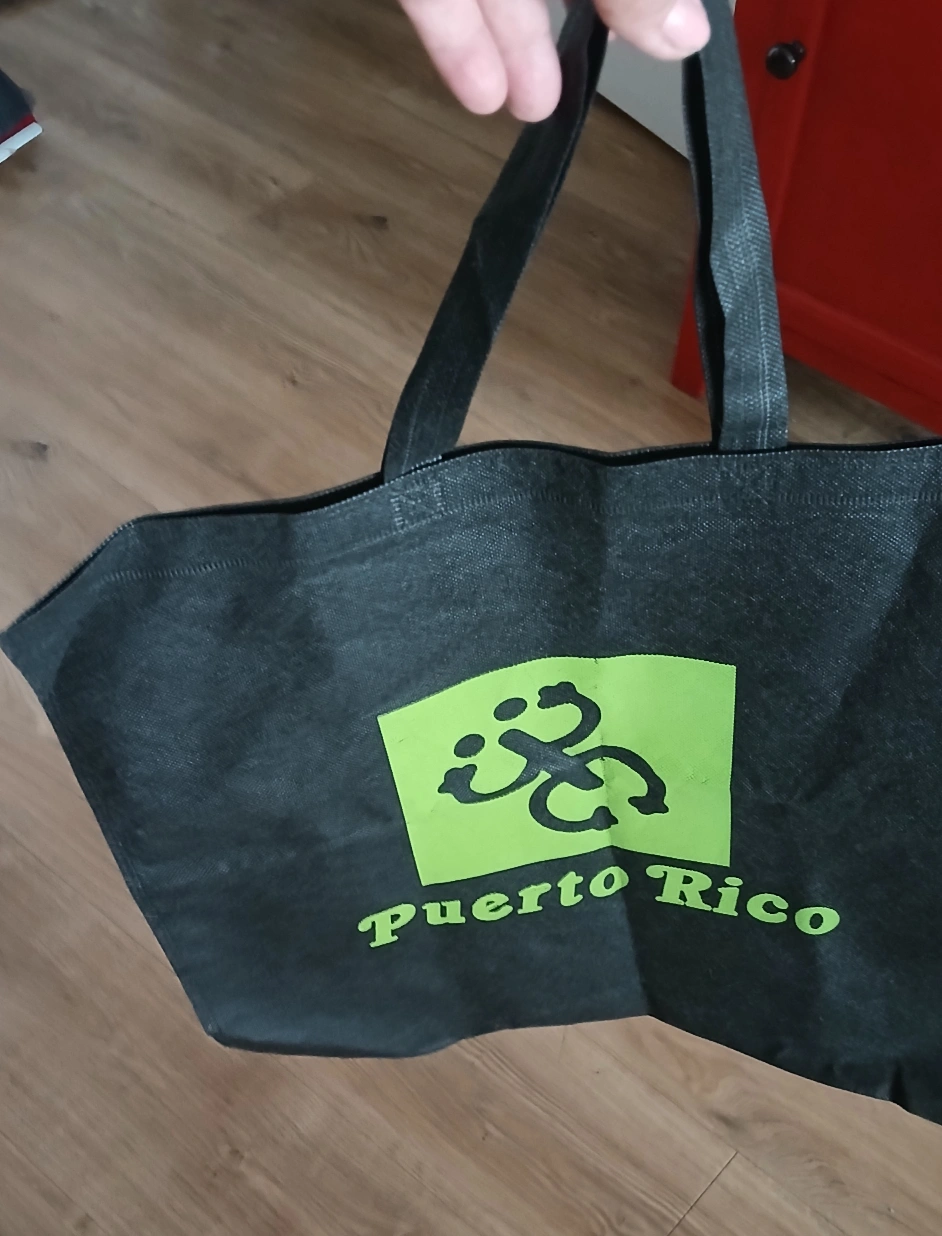 Black tote bag with the Puerto Rico logo. Features long handles. Perfect for carrying your essentials with you wherever you go,last one left of this kind.