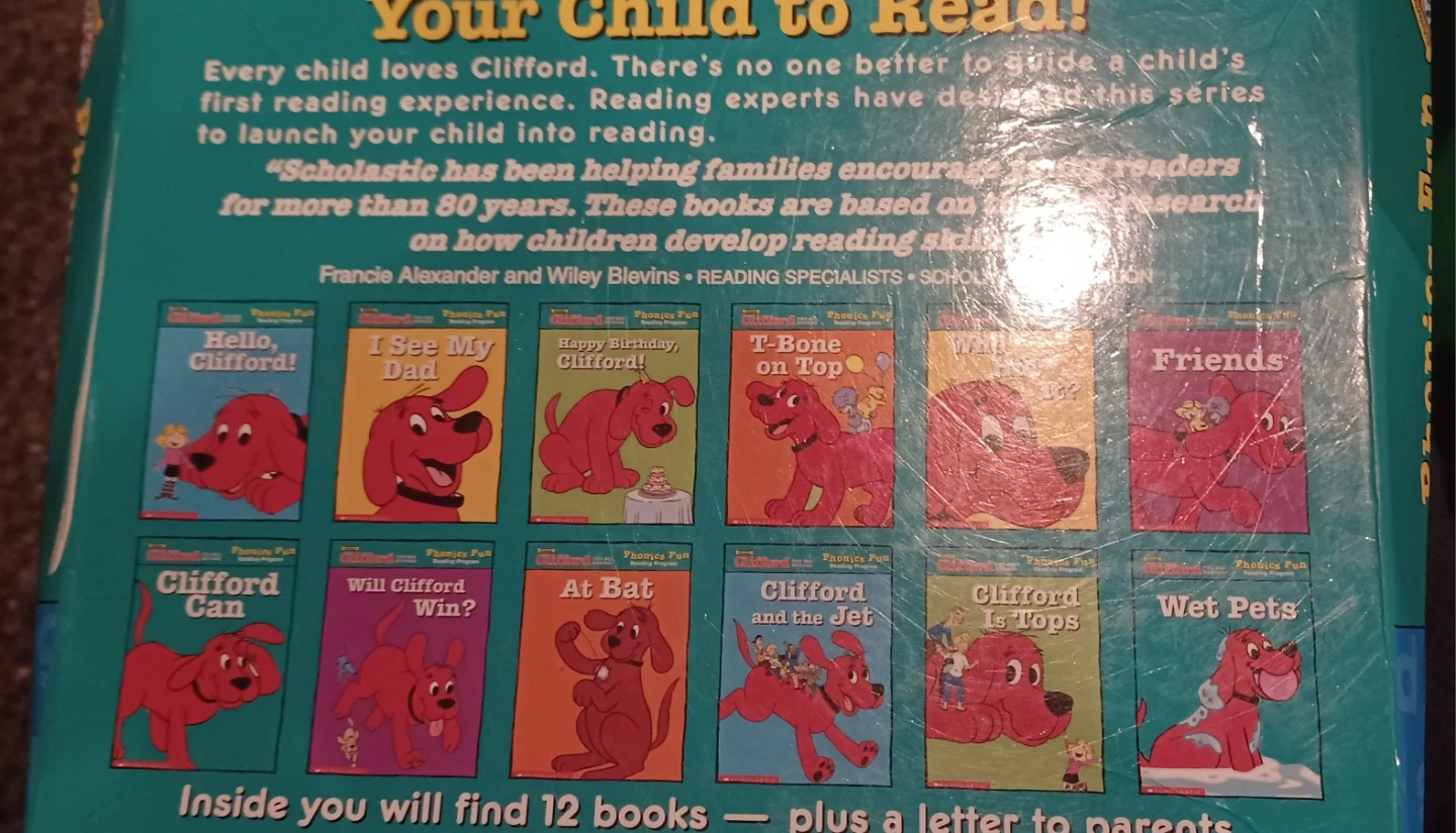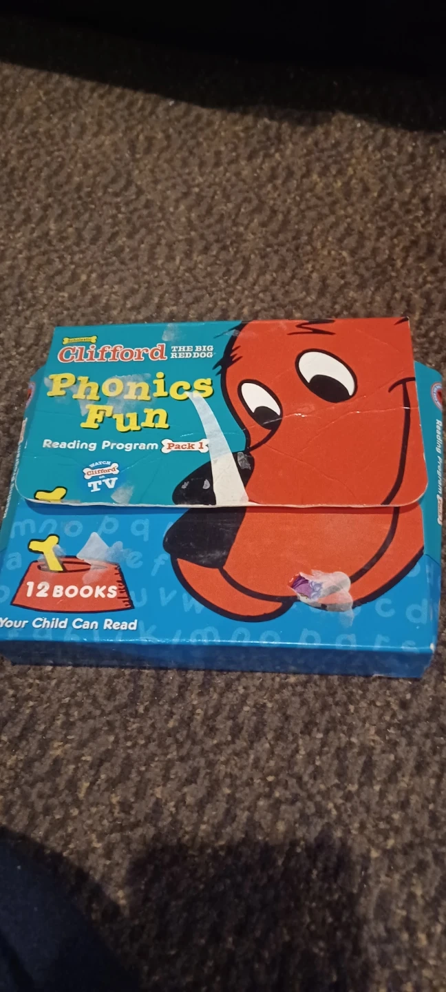 Bring the joy of reading to your child with this Clifford the Big Red Dog Phonics Fun reading program. This set includes 12 books perfect for young learners. Please note that the set is in used condition, with a few cosmetic blemishes to the outer box; however, the books inside are in great shape and ready to inspire a love for phonics! It is still useable and in good shape.