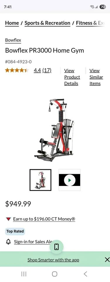 Bowflex PR3000 Home Gym features 50 strength exercises and no cable changes needed between sets, all in a compact, space-saving design. Includes 210 lbs (90 kg) of Power Rod® Resistance, upgradeable to 310 lbs (141 kg). Dimensions: 64" L x 41" W x 83" H (163 x 104 x 211 cm). Pickup available at Rossland and Simcoe in Oshawa.