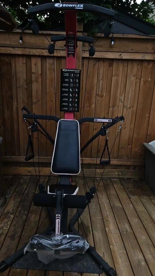 Bowflex PR3000 Home Gym features 50 strength exercises and no cable changes needed between sets, all in a compact, space-saving design. Includes 210 lbs (90 kg) of Power Rod® Resistance, upgradeable to 310 lbs (141 kg). Dimensions: 64" L x 41" W x 83" H (163 x 104 x 211 cm). Pickup available at Rossland and Simcoe in Oshawa.