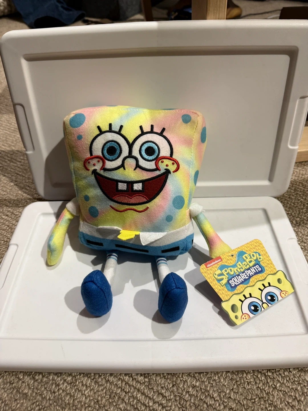 Check out this adorable SpongeBob SquarePants plush toy! It features a fun tie-dye design and is in great condition. Perfect for any SpongeBob fan or as a cute addition to a collection