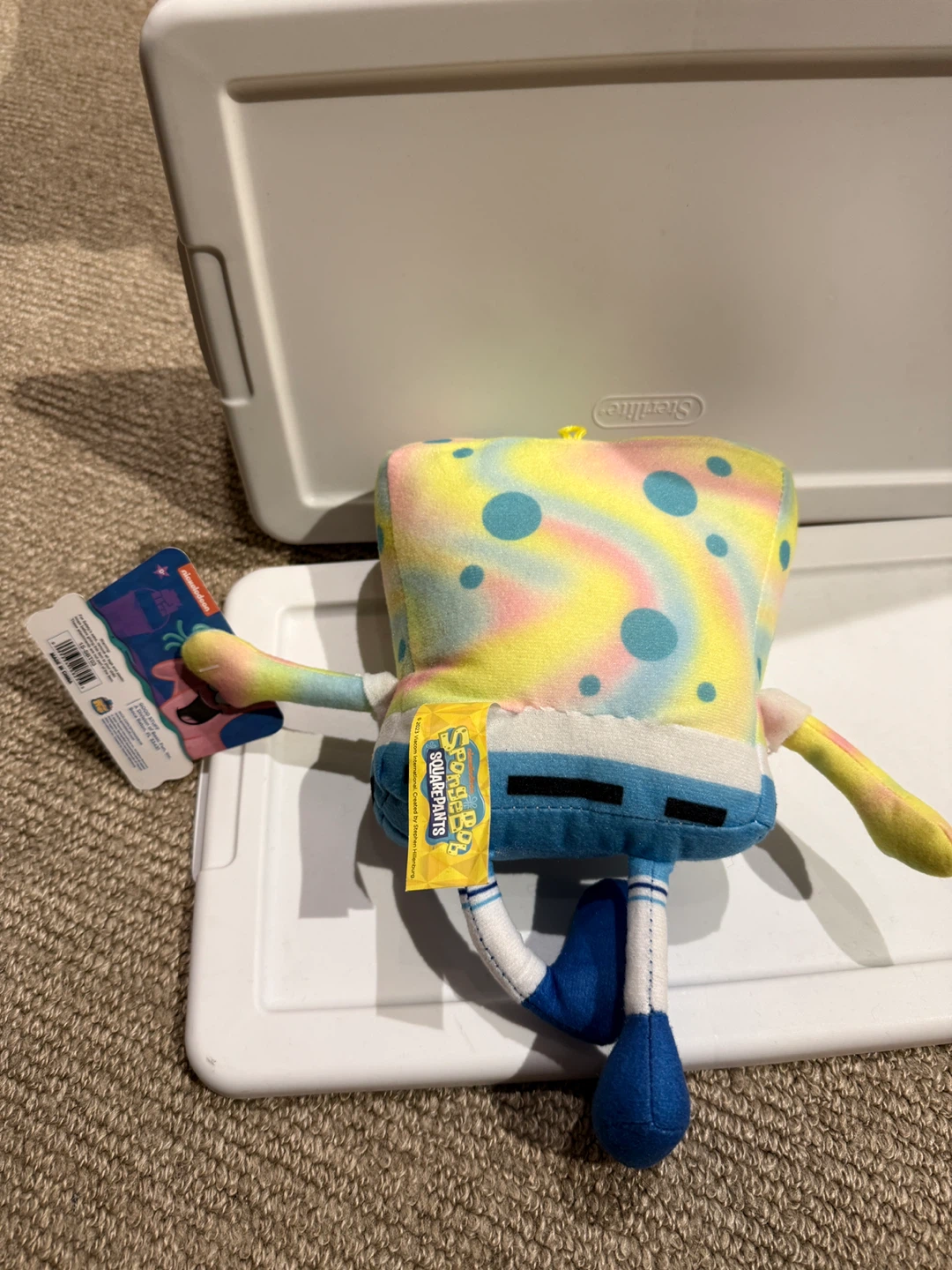 Check out this adorable SpongeBob SquarePants plush toy! It features a fun tie-dye design and is in great condition. Perfect for any SpongeBob fan or as a cute addition to a collection