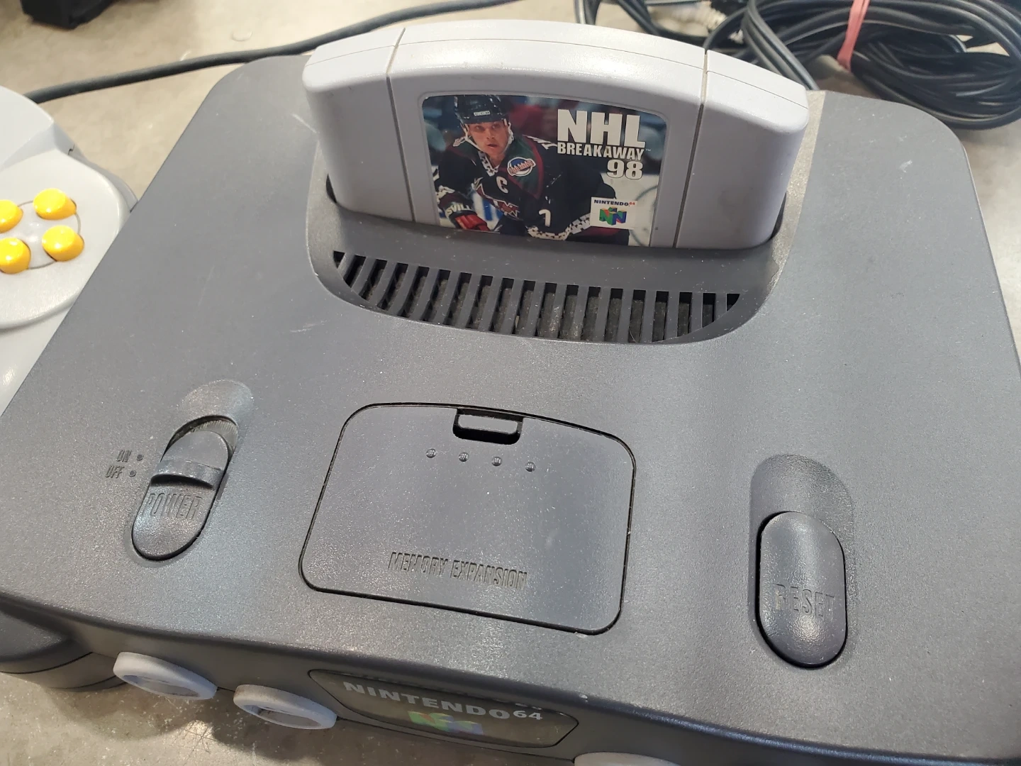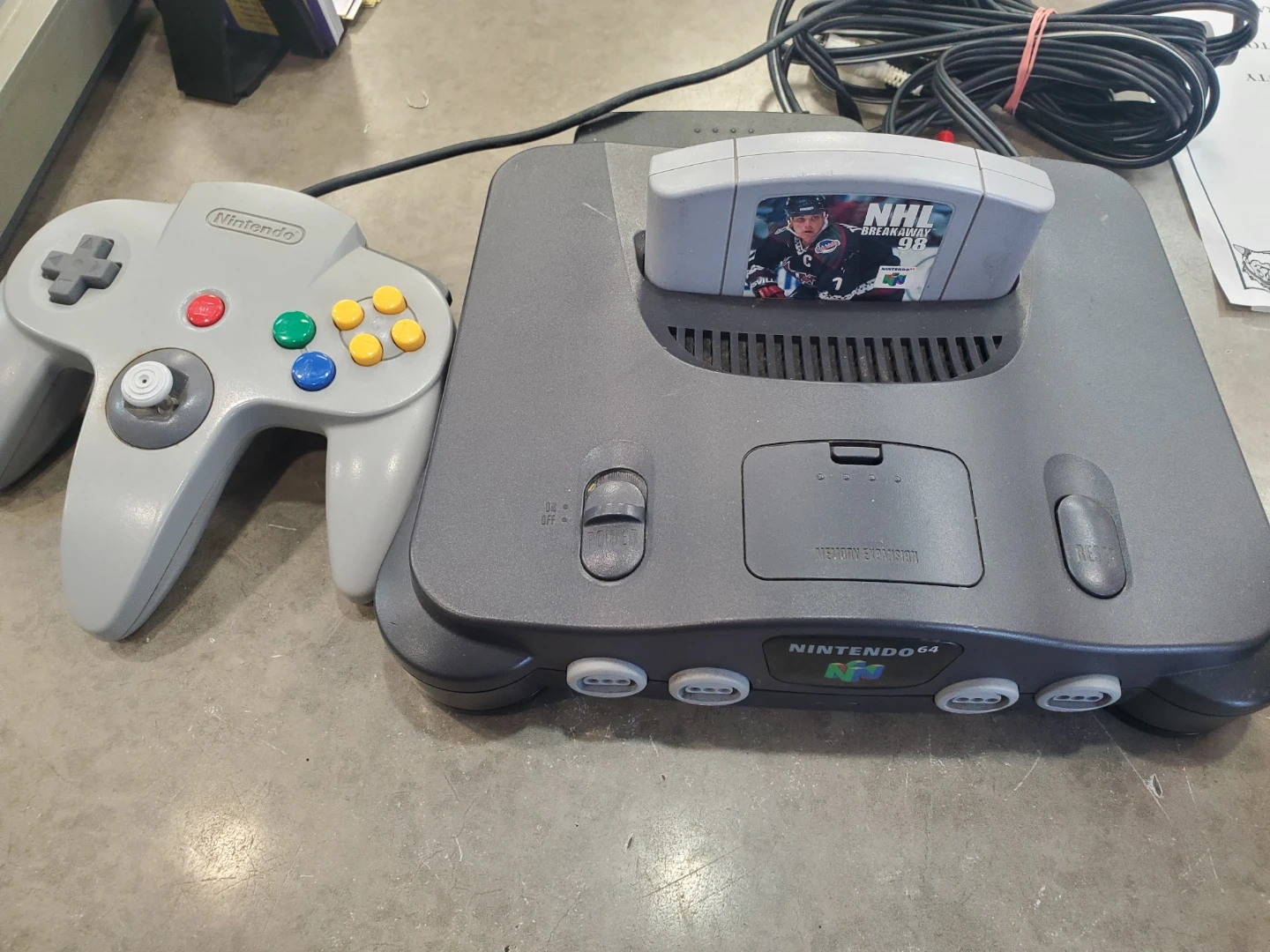 Selling a classic Nintendo 64 console! It comes with a controller and the NHL Breakaway 98 game. Perfect for some retro gaming fun!