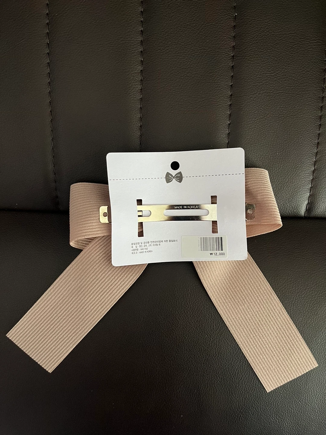 A pretty beige bow hair clip. It's attached to a sturdy metal clip. Authentically bought brand new that I brought from Korea priced at 12,000WON which equates to about $13.00CAD. However it’s a little too big for my liking. Super cute addition for kids or adults!
