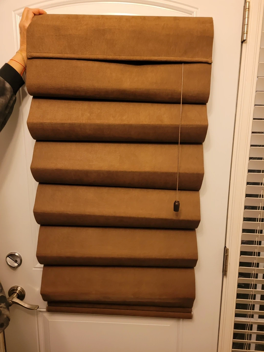 Selling a brown Roman shade from Blinds To Go. It comes with the installation guide and original box. Never used, beautiful Swede material,Perfect for adding a touch of warmth to any room