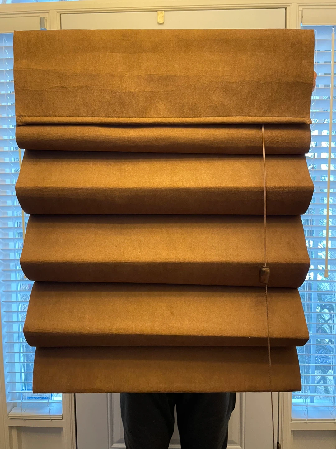 Selling a brown Roman shade from Blinds To Go. It comes with the installation guide and original box. Never used, beautiful Swede material,Perfect for adding a touch of warmth to any room