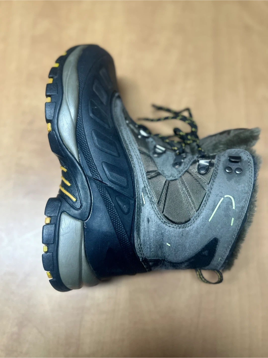 Nortiv 5 waterproof insulated winter boots. Features a rubber sole and faux fur lining. Good traction for snowy conditions.