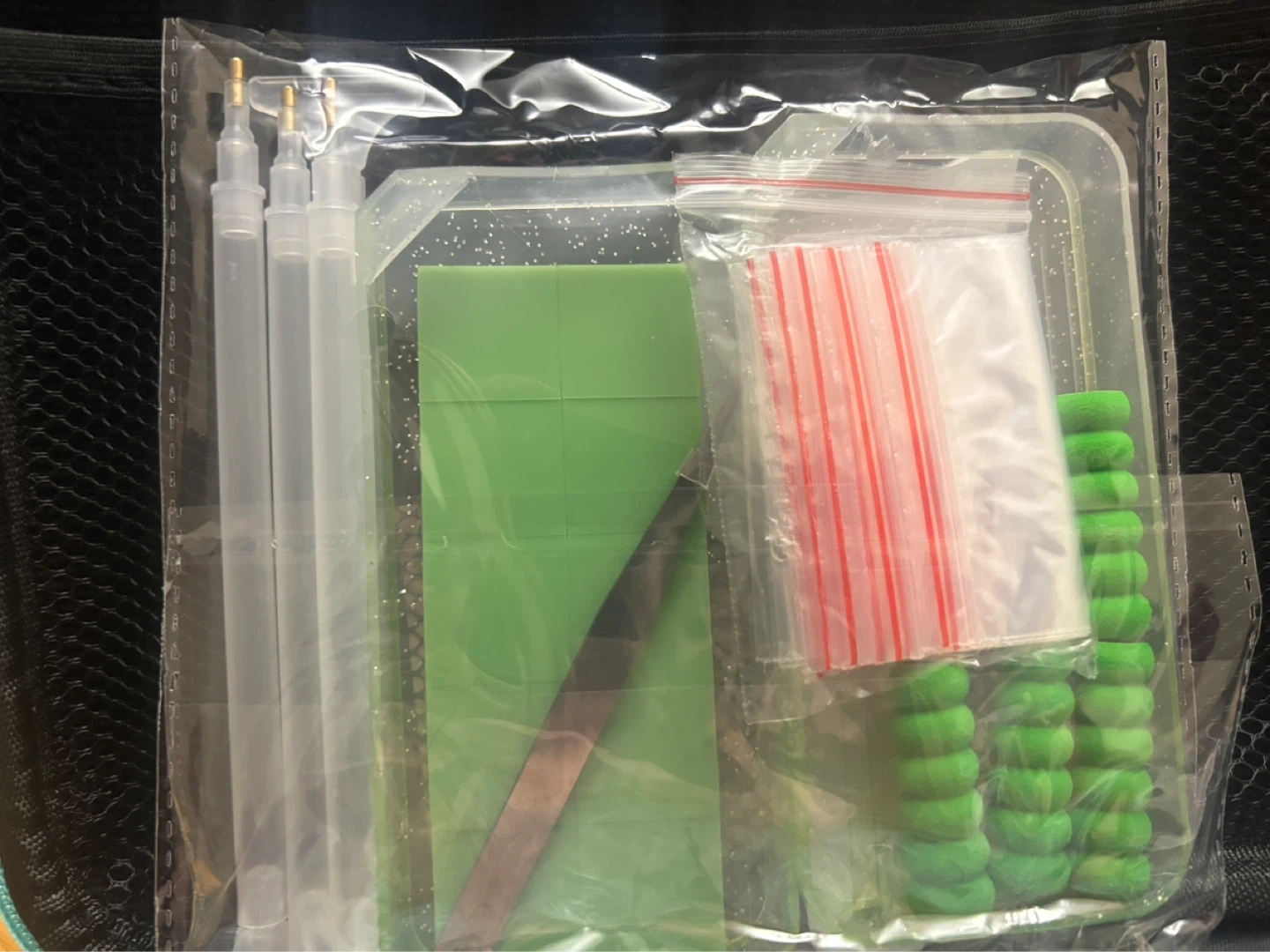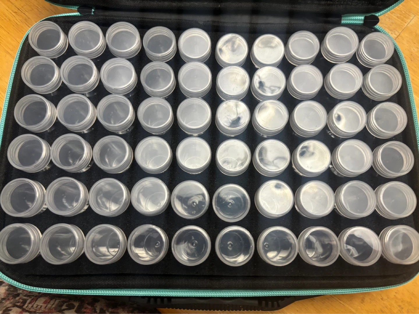 Comes with a storage case holding 60 small containers. Includes various diamond painting tools. Perfect for organizing beads or small craft supplies