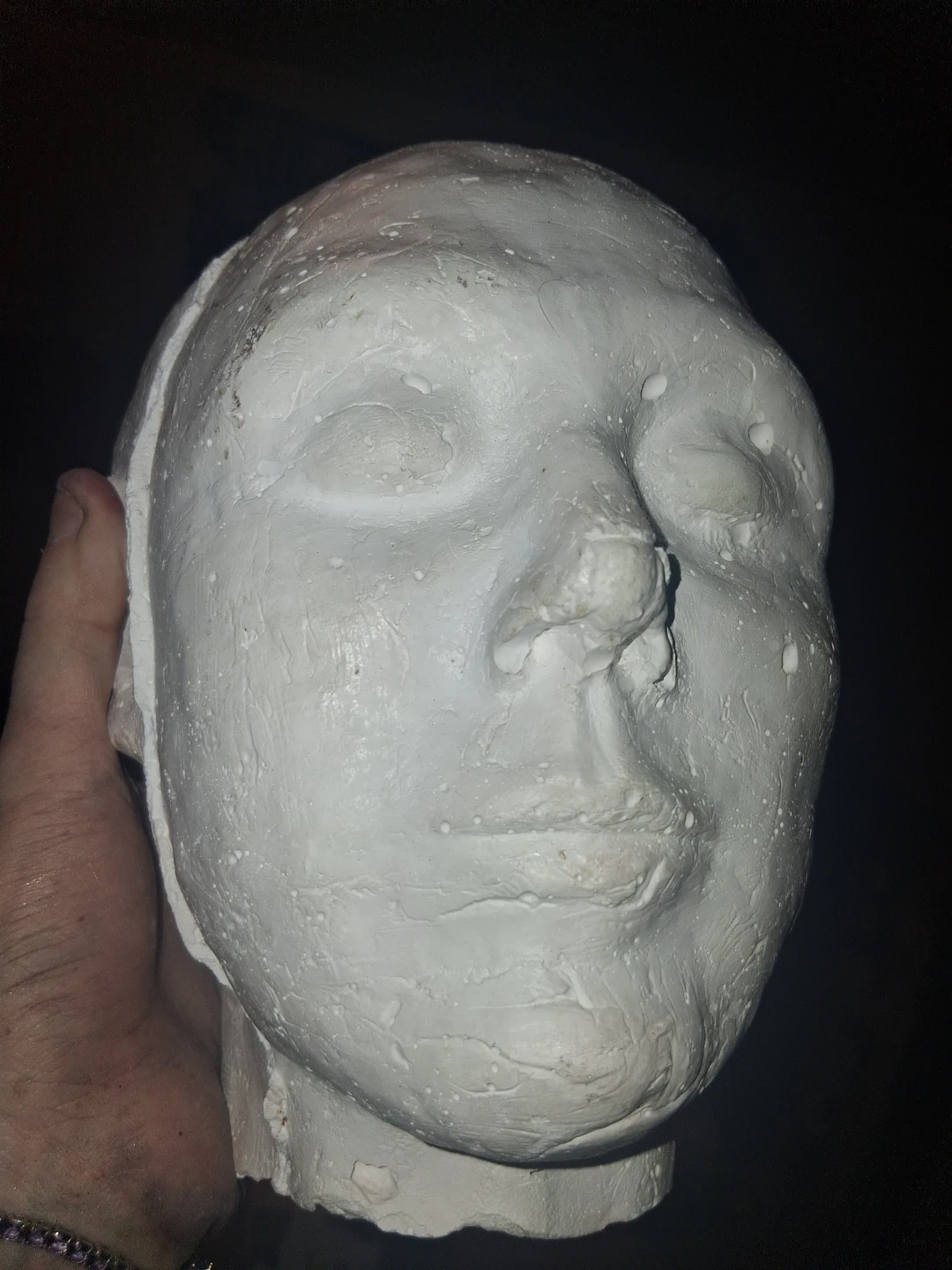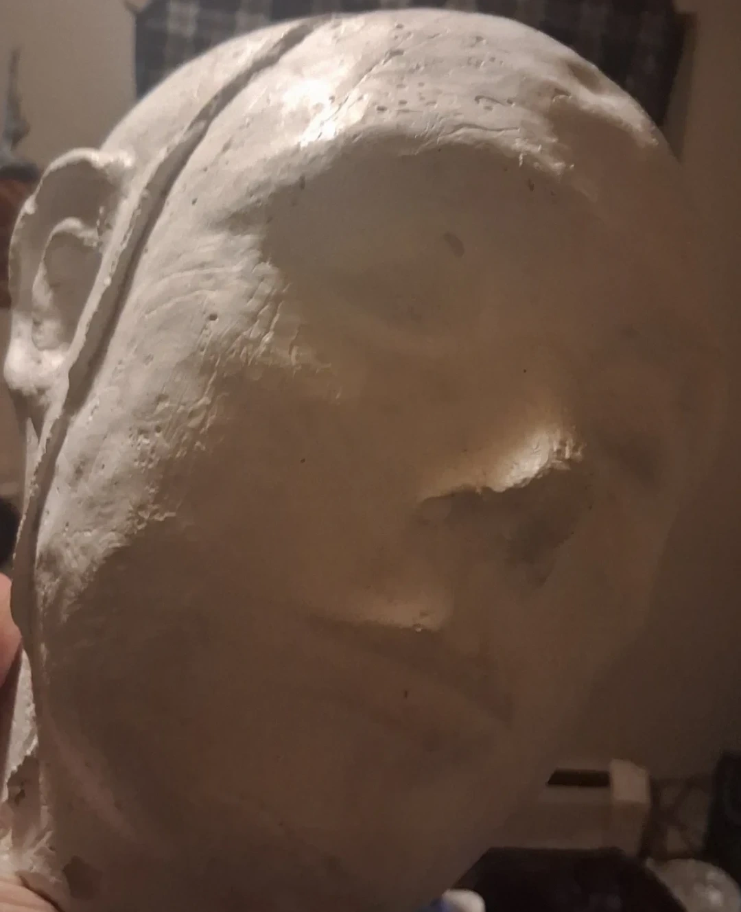 This is a handmade plaster bust of a head. It's a solid piece, ready for display or further artistic work. Its neutral colour makes it versatile for various decor styles. Pick up only unless near intersection of Oxford and Gammage Street.