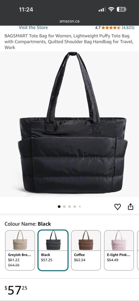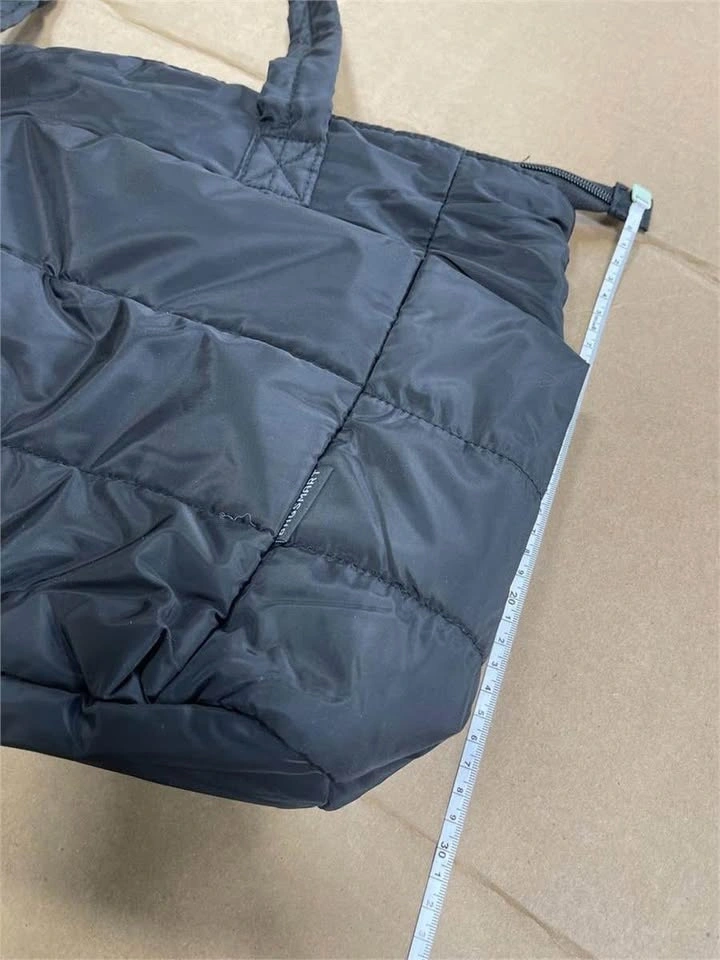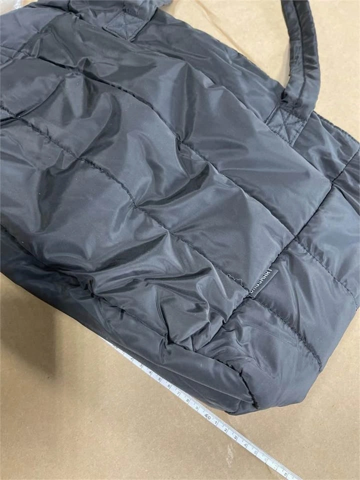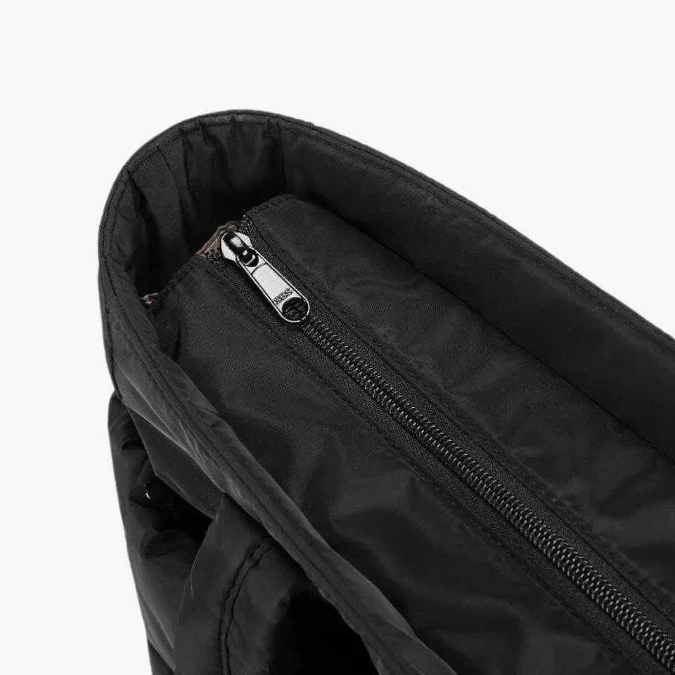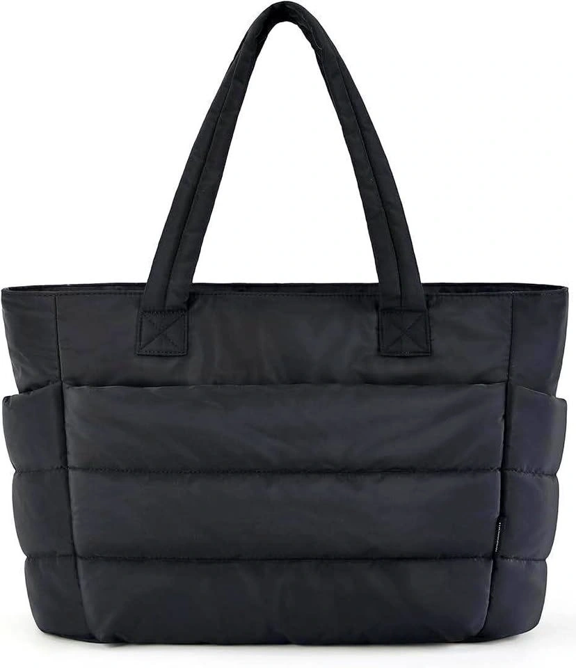 Black Quilted Puffy Tote Bag Laptop Compartment