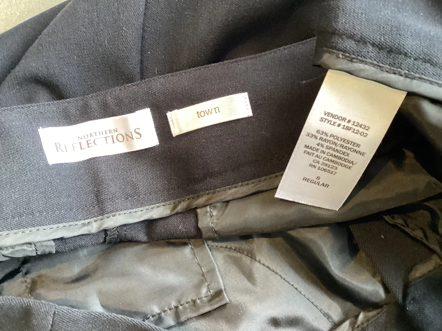 Northern Reflections Black Pant, quality brand, like new, Town Collection, straight leg, poly/rayon/spandex blend, size 8 Regular, $10.