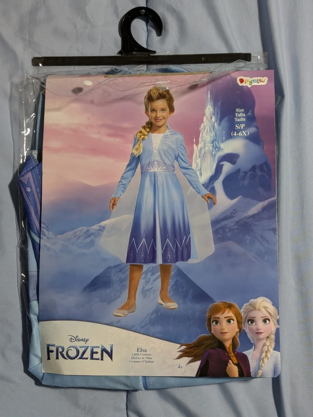 This is a Disney Frozen Elsa child costume. It's a size S/P, which fits 4-6X. Perfect for any young fan of the movie!