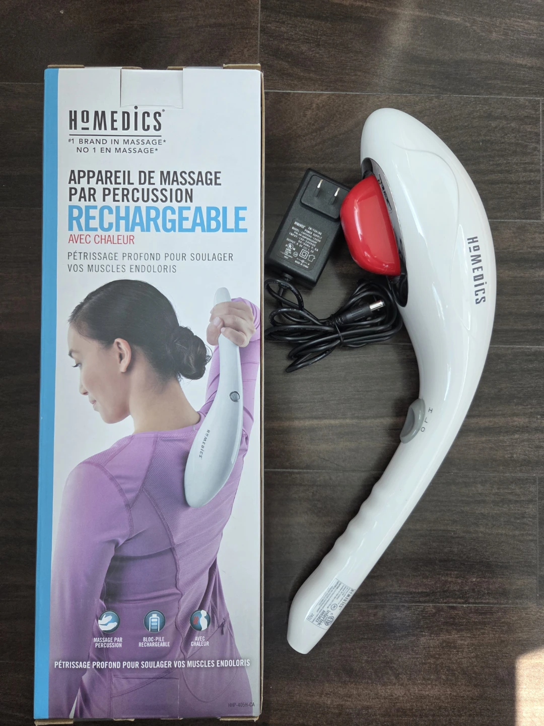 Selling a HoMedics rechargeable percussion body massager with heat! It's great for deep kneading to soothe sore muscles. Comes with the charger and original box!